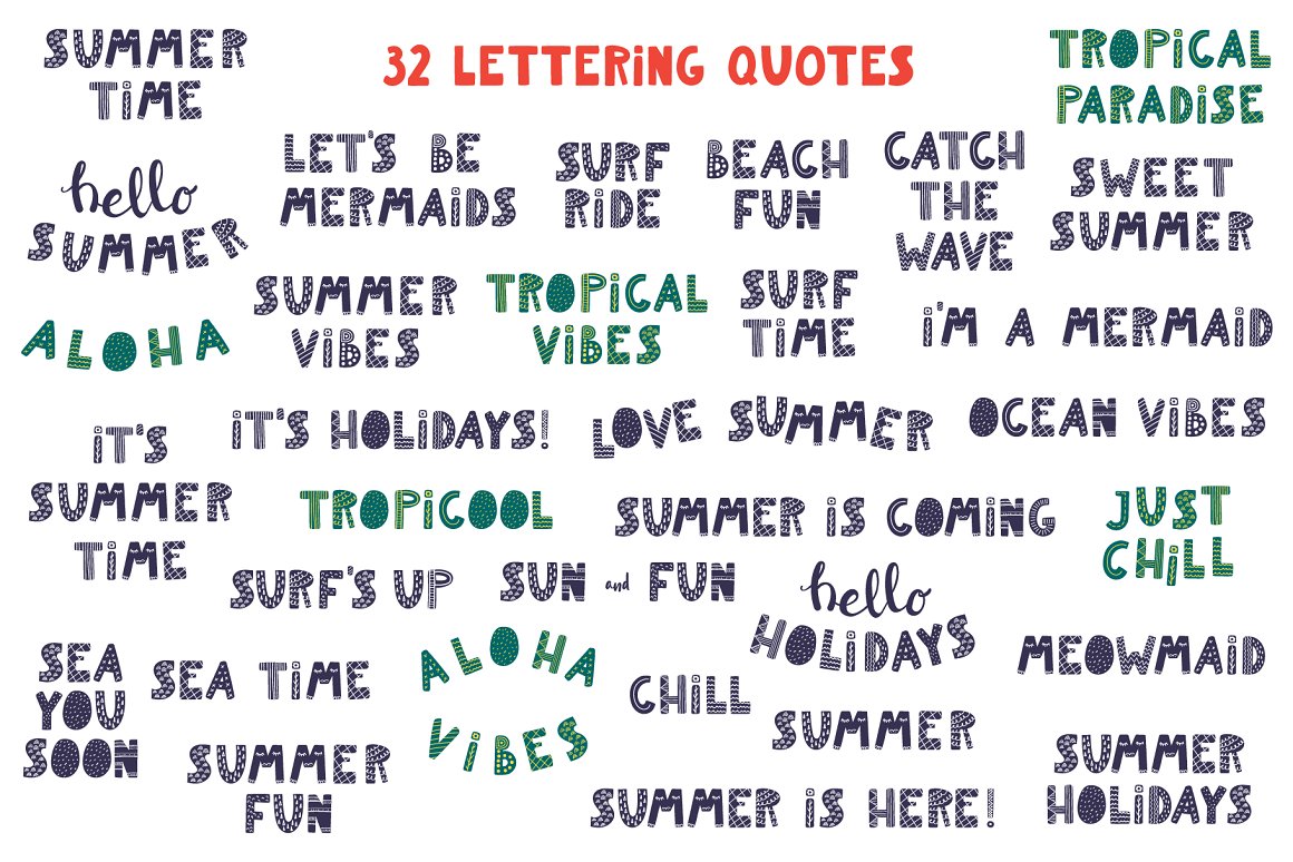 - 32 lettering quotes (AI, EPS10, separate high resolution PNG with transparent background)