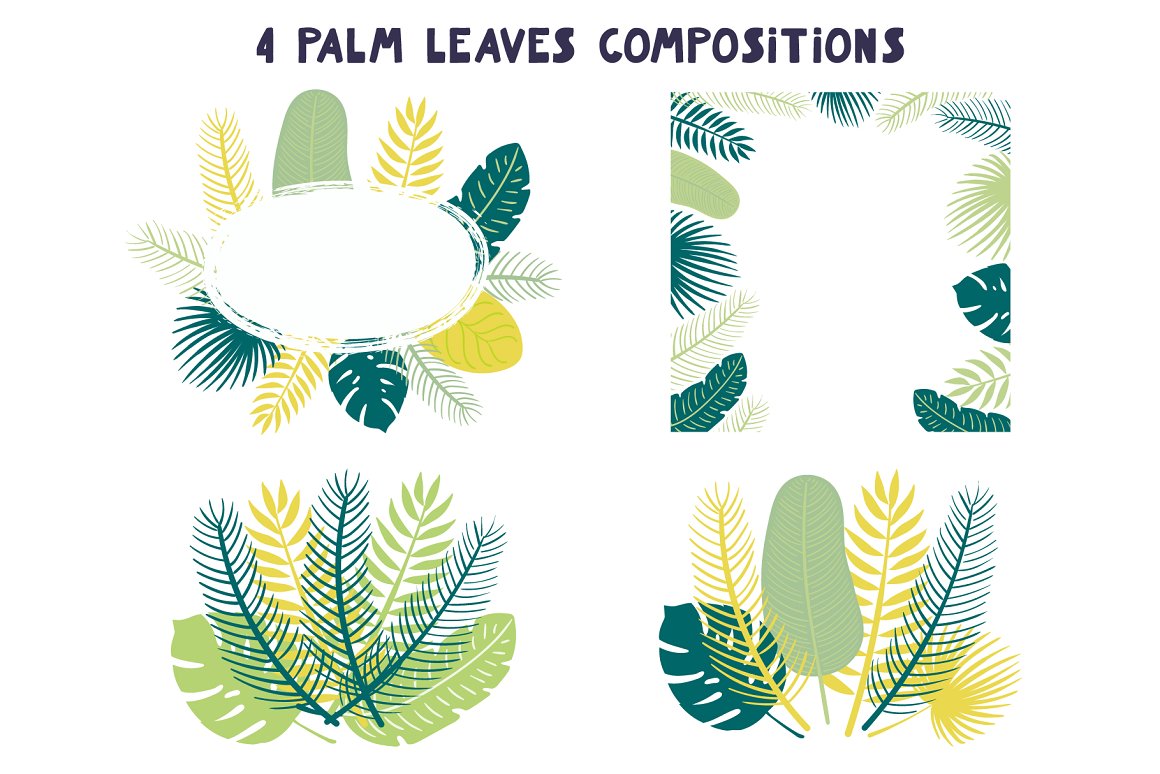 - 4 palm leaves compositions (AI, EPS10, high resolution PNG with transparent background)