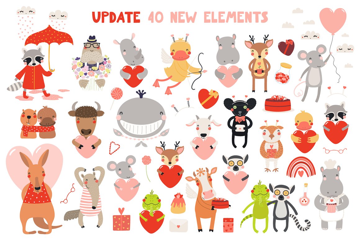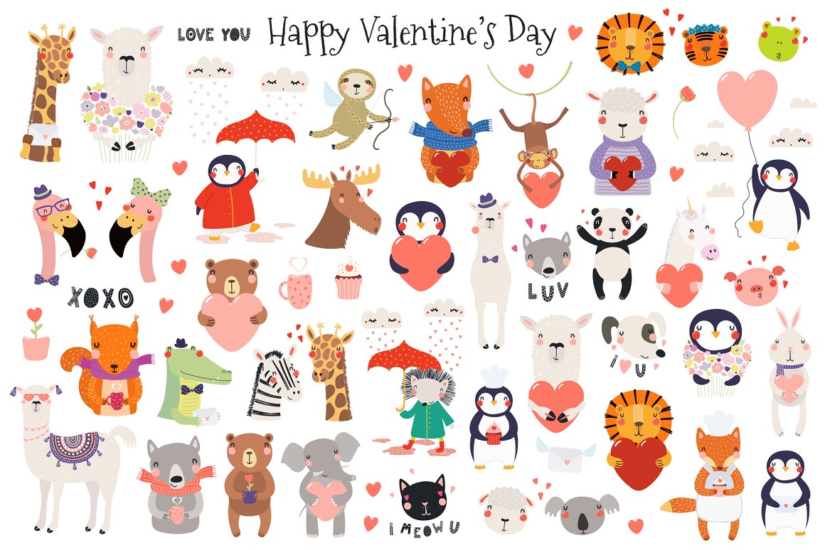 9. Valentine Day Cute Animals Clipart from Sceptical Cactus