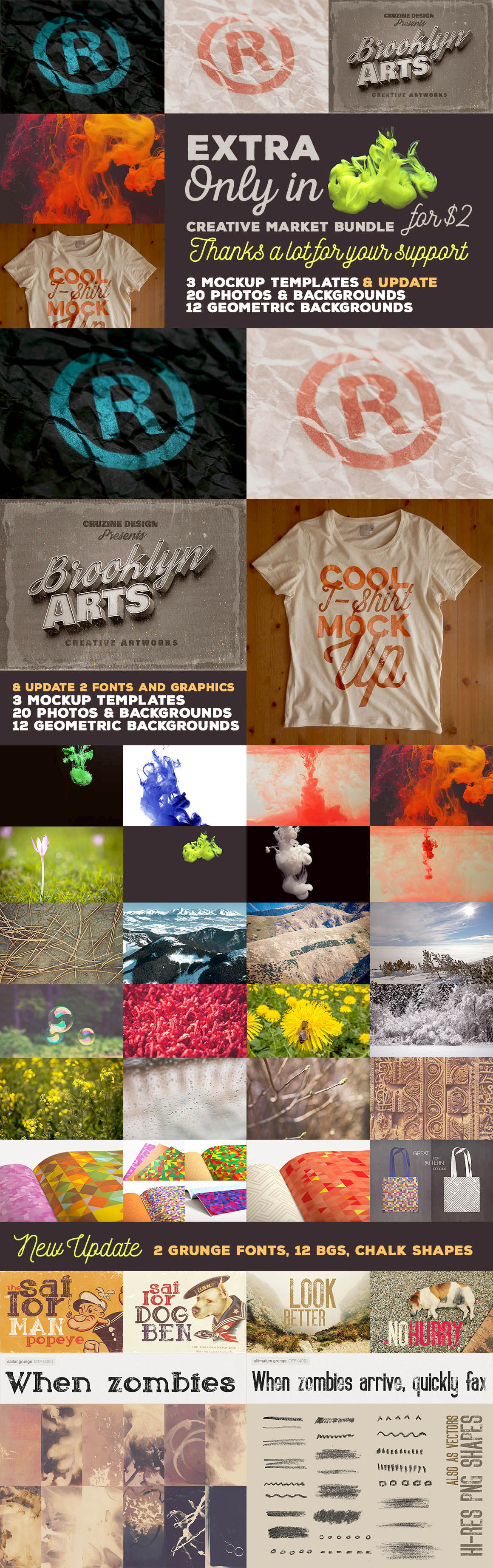 You can support us little bit (we’ll prepare also some next bundle for you in future) with $2 and get also EXTRA premium bundle with 3 mockups, 20 photos, 12 geometric backgrounds, 2 grunge custom fonts, 12 grunge textures & chalk shapes! Just buy this megabundle for $2 here in Creative Market. Thanks a lot 😉