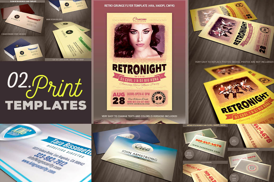 - also EXTRA premium bundle with 3 mockups, 20 photos, 12 geometric backgrounds, 2 grunge custom fonts, 12 grunge textures & chalk shapes!
