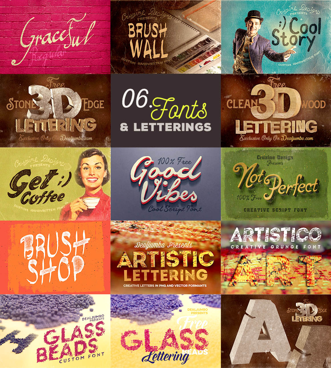 Dealjumbo Free Mega Bundle vol.1 contains 22 mockups, 84 logo templates, 100s of photos & 9 custom fonts from CruzineDesign for FREE and also for commercial use!
