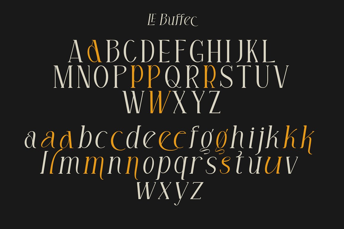 LE Buffec is a modern display serif. LE Buffec is a variable typeface for weight. Play around with individual letters to give your type a unique look. Included in this family are alternate characters to add even more styling options.
