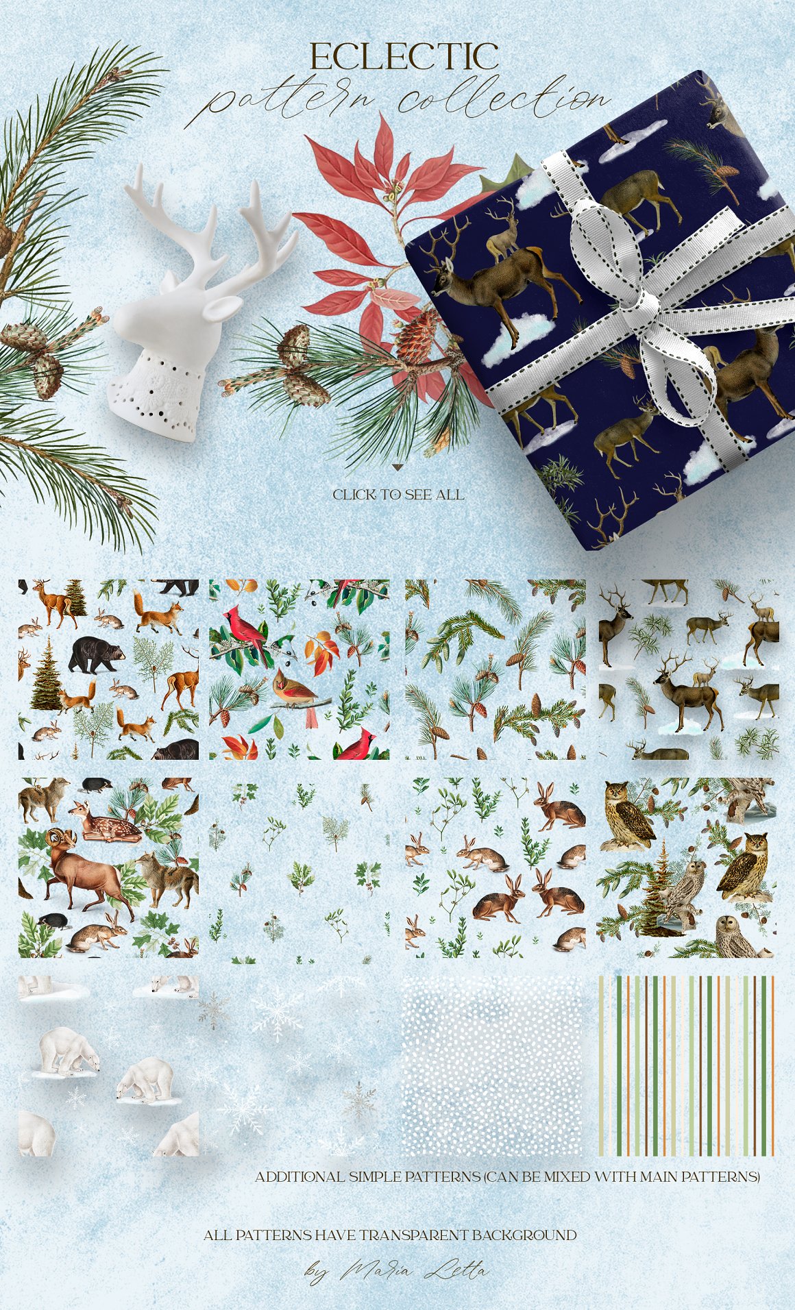 Make memorable cards, wedding invitations, stationery, fabrics, wrapping paper, Christmas greeting cards, gifts, winter nature themed projects, wall art prints, logo, invites, brand, contemporary projects, fine art, modern or vintage wedding invites, suite and stationery , planners, stickers, branding identity, surface patterns, scrapbooking, textile design, cosmetic, advertising, promotion materials for different social media accounts – Facebook, Instagram, Pinterest, Etsy, packaging design, cases for phones and laptops, diary, logos, quotes, blogs, web, banners and so on.
