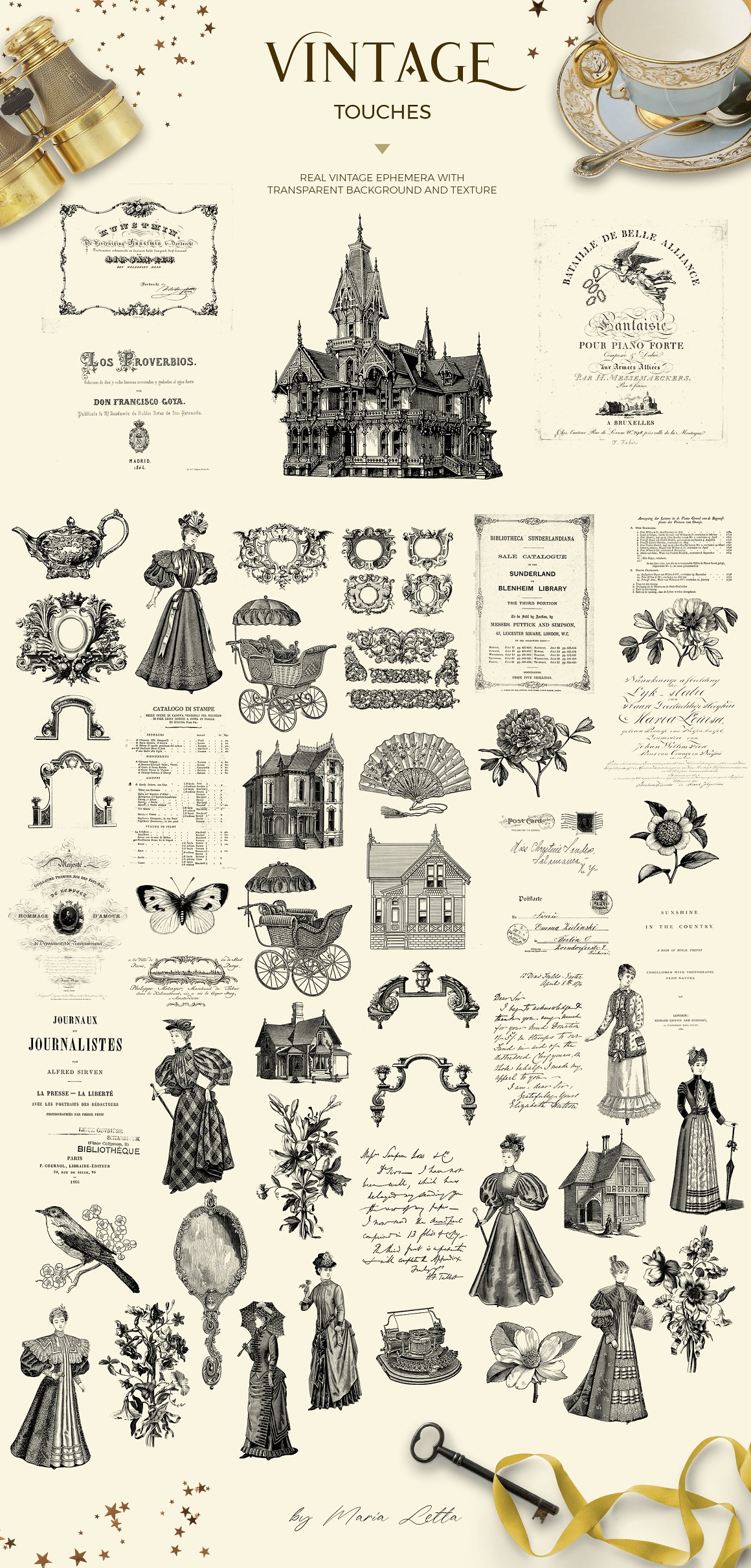 - 50x PNG elements and ephemera with transparent background approx 2500-5000px to the long side