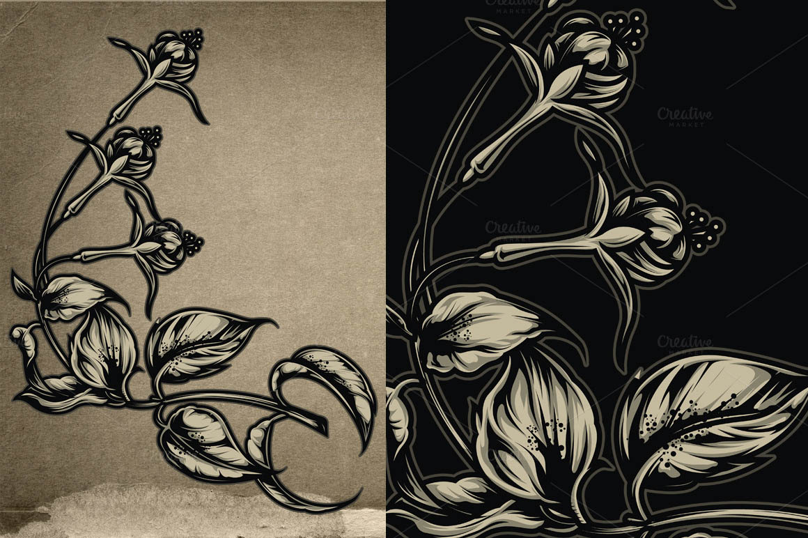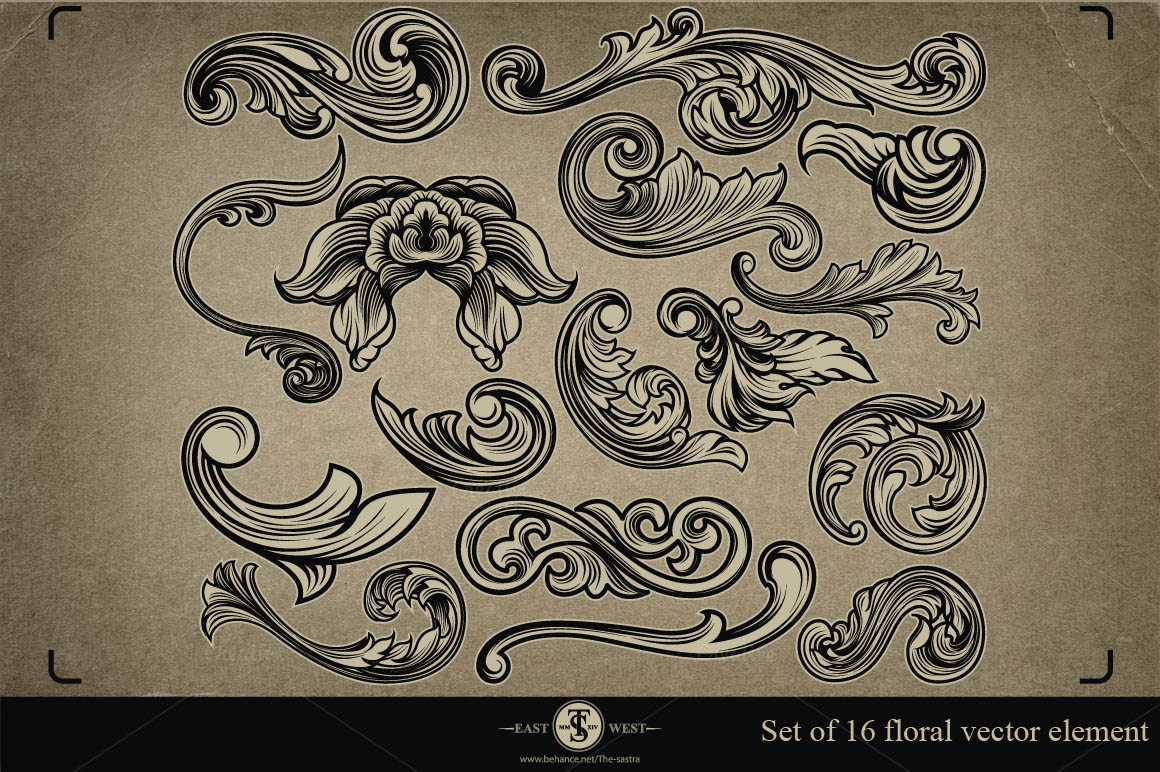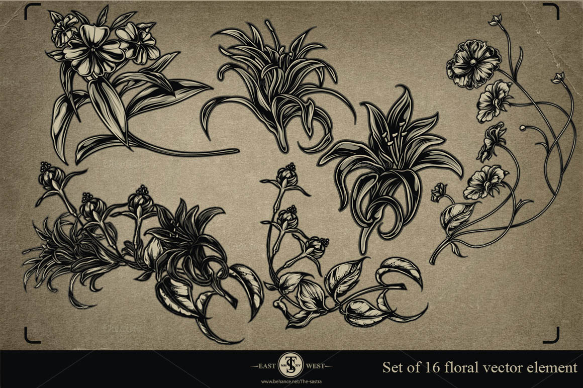 This set of âfloral vectorâ are perfect for using on frame, ornament for design and other creative applications. Includes these Vector files: 16.eps and 16.png files, layered each colors and resizable, CMYK color format on 300dpi.