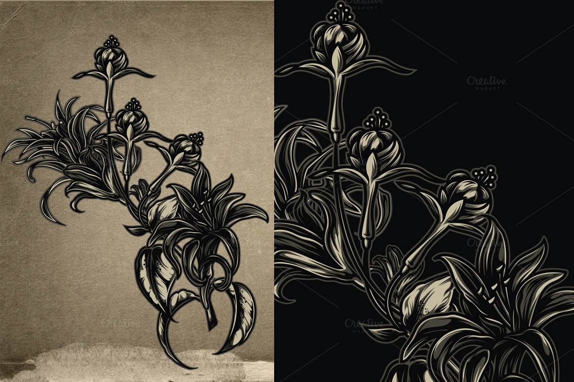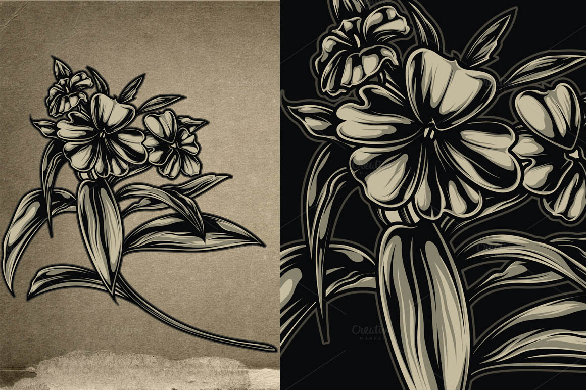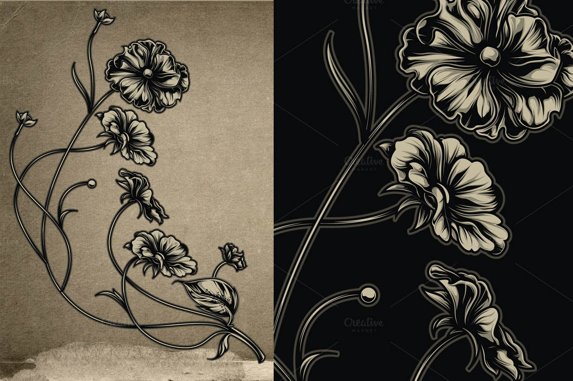 This set of âVector Flower stock volume 2â are perfect for using on shirt design, poster and other creative applications. Includes these Vector files: 6.Ai files (Cs4), layered each colors and resizable 6.eps files (EPS10) , layered each colors and resizable. All file used CMYK color format on 300dpi.