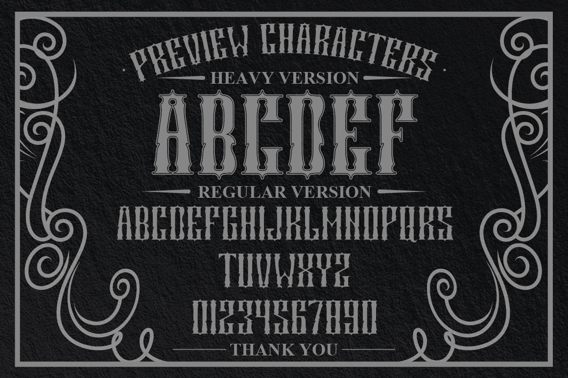 This decorative typeface was inspired by tattoo designs, rebel and biker style designs…