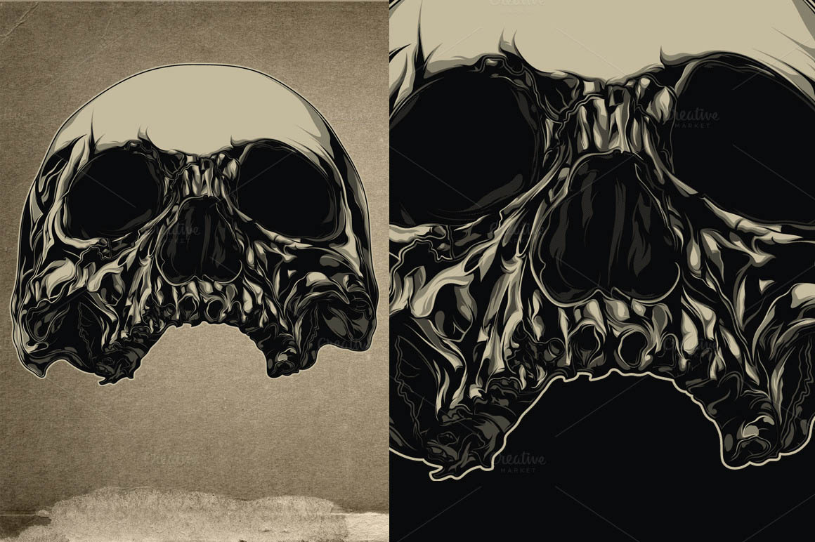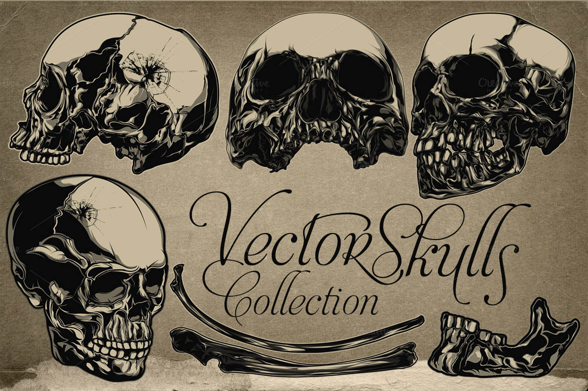 This set of skull element are perfect for using on shirt design, poster and other creative applications. Includes these Vector files: 5 .eps files (4 files of head skull + 1 file of jaw skull and cross bones), layered each colors and resizable. & 7.png files with transparent background.