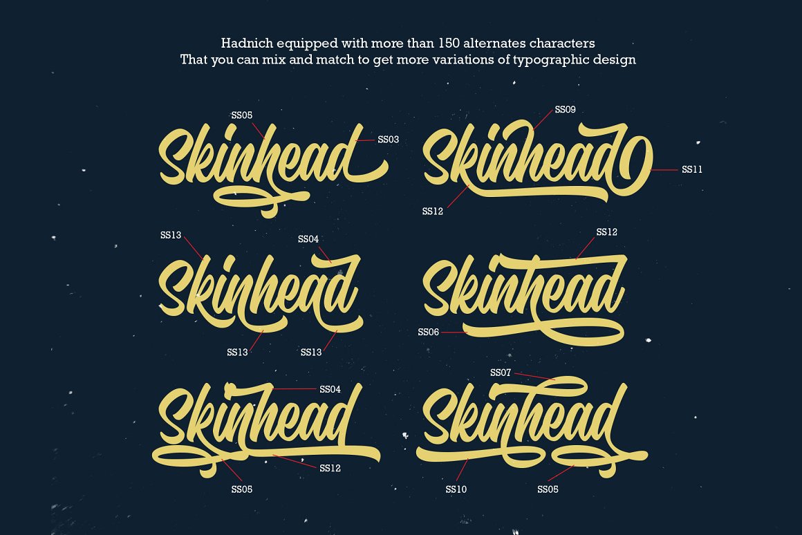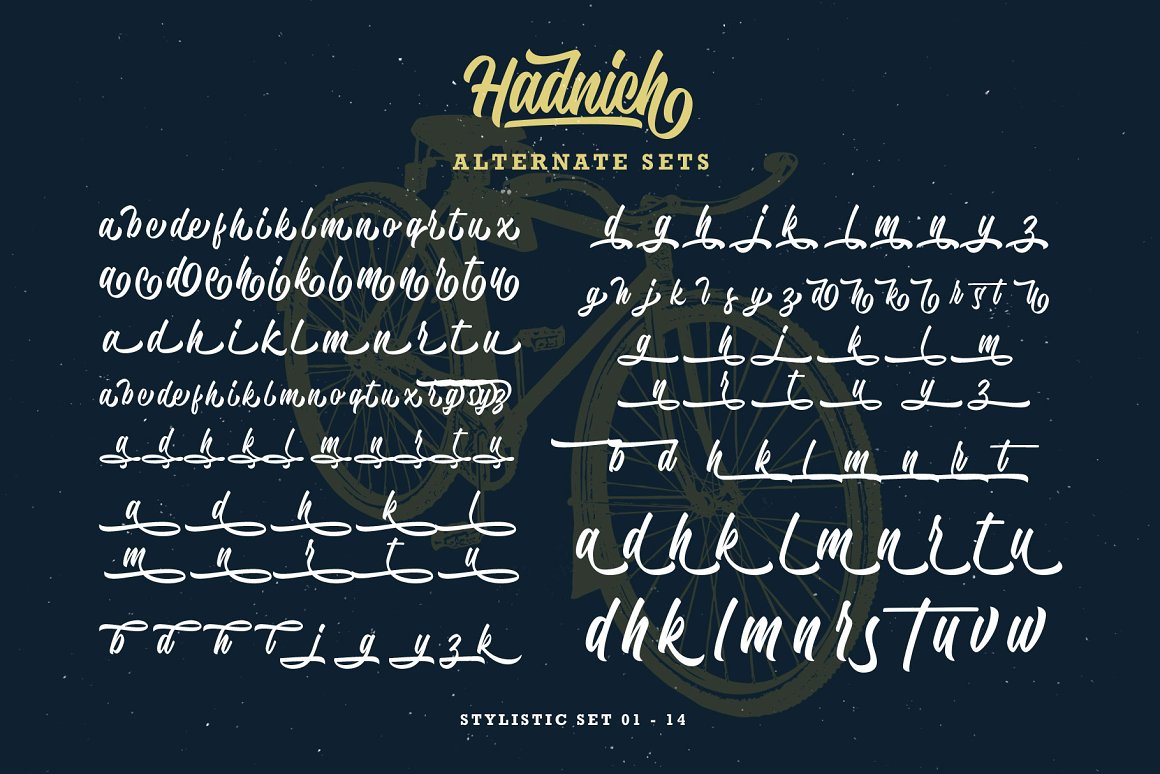 Inspired by the vintage brush typography, we proudly present Hadnich. the versatile script font. Carefully designed with the taste of old school sign painting which has the neat letterforms, attractive move and combined in modern form.