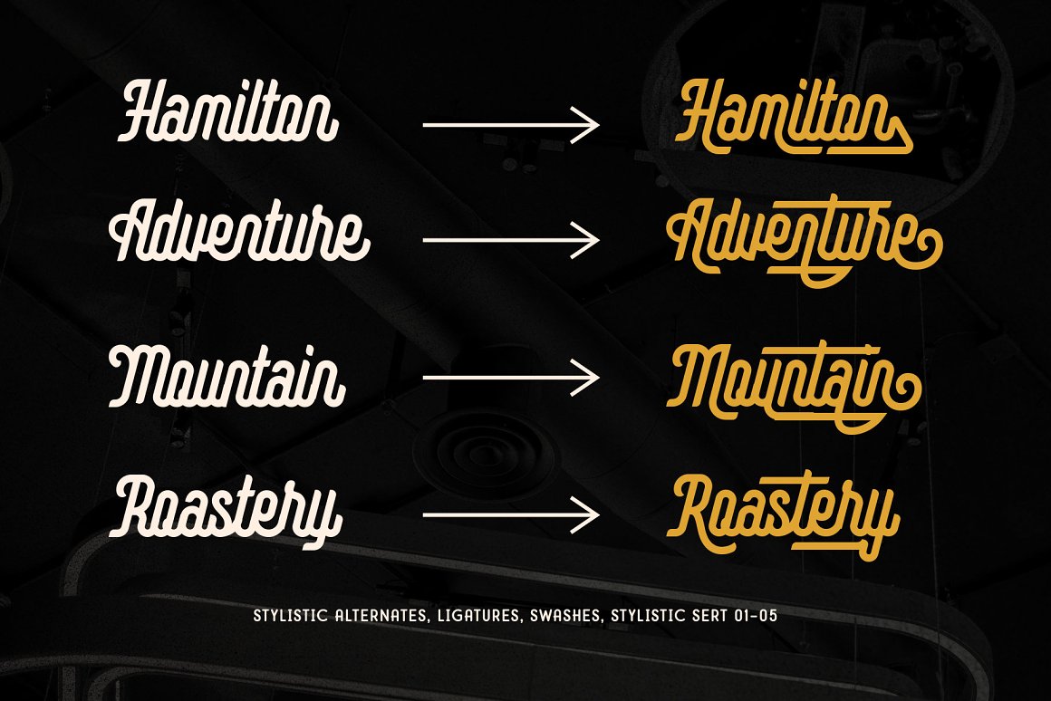 Montagna is a versatile font that you can use for any styles of such as funky, retro, techno, modern, minimalist, and many more! Equipped with straight swash to give you the more elegant looks and a lot of alternates characters that allow you to make the brilliant combination of typography.
