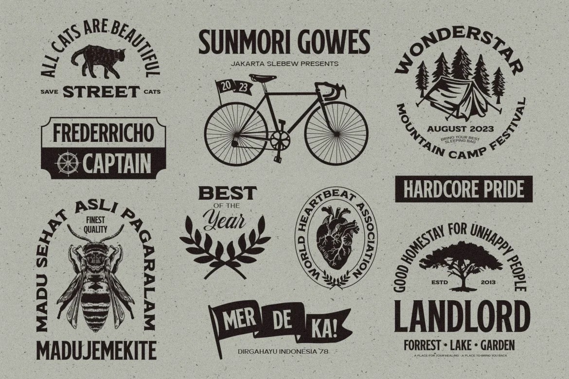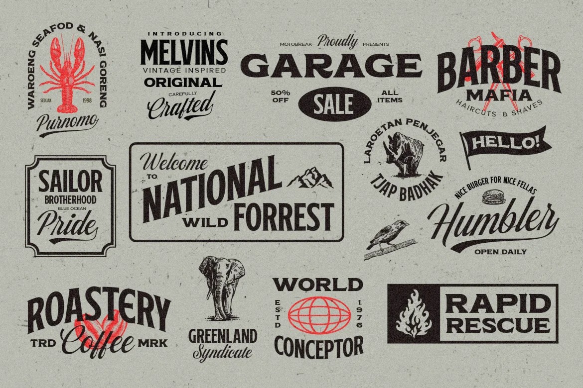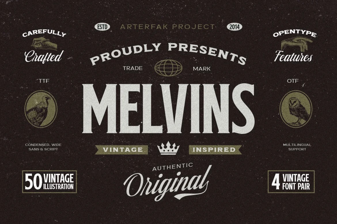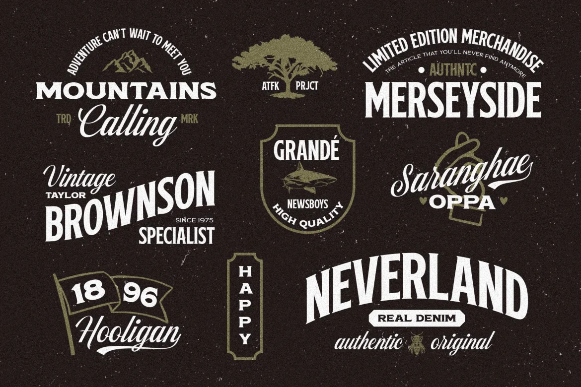 Brand new decorative, unique, retro & creative style typography bundle with 14 multilingual display font families! Most of these fonts come with lot of alternate characters and ligatures so you can use it for any kind of modern style branding projects or T-shirt designs 😉