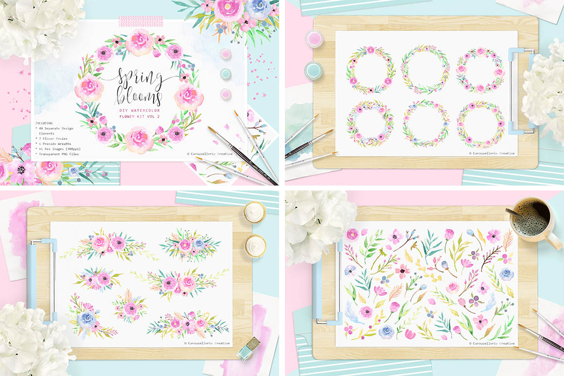 2. Spring Blooms – Watercolor Flowers from Carousellerie Creative