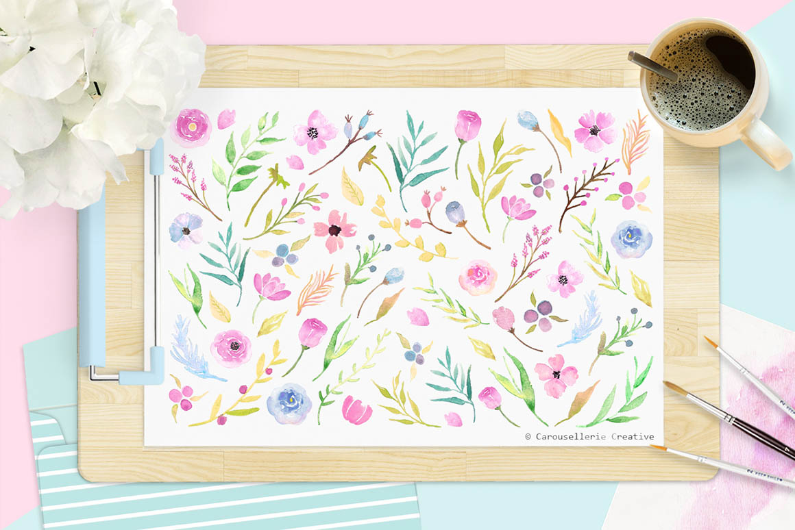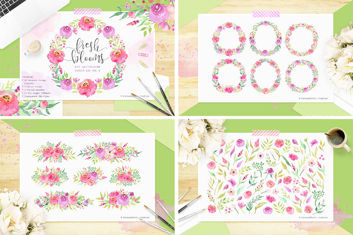 1. Fresh Blooms – Watercolor Flowers from Carousellerie Creative