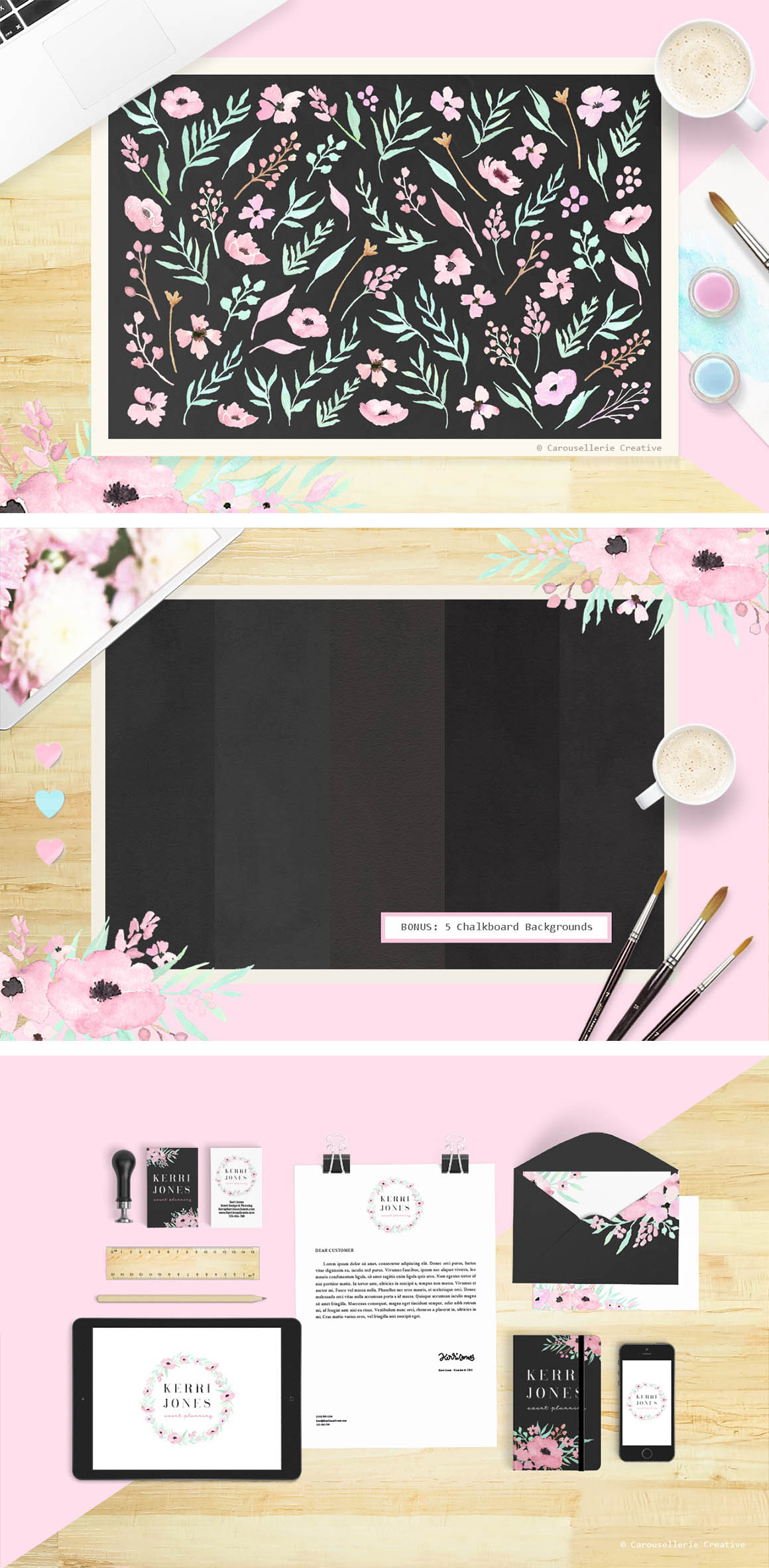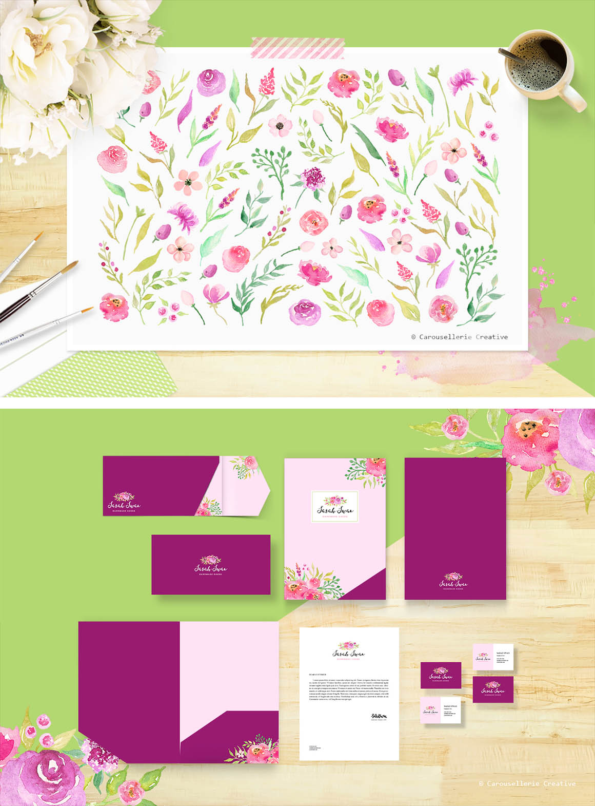 All these beautiful decorative elements are from Carousellerie Creative. You can mix, cut, color change – just play with all these floral watercolor images and create amazing and unique designs! 😉