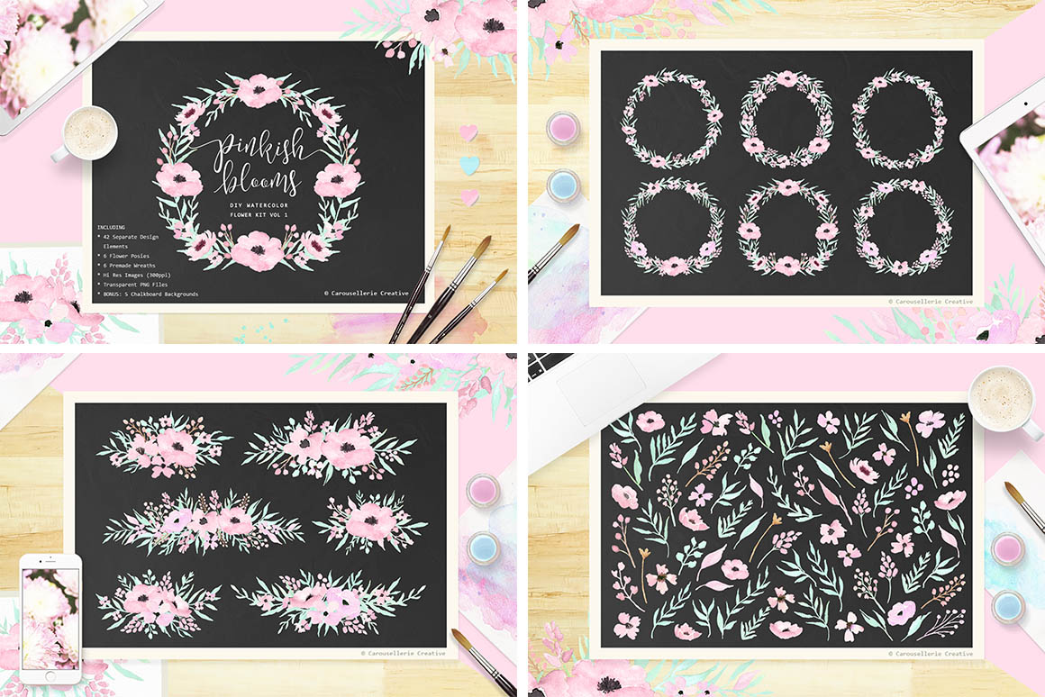 3. Pinkish Blooms – Watercolor Flowers from Carousellerie Creative