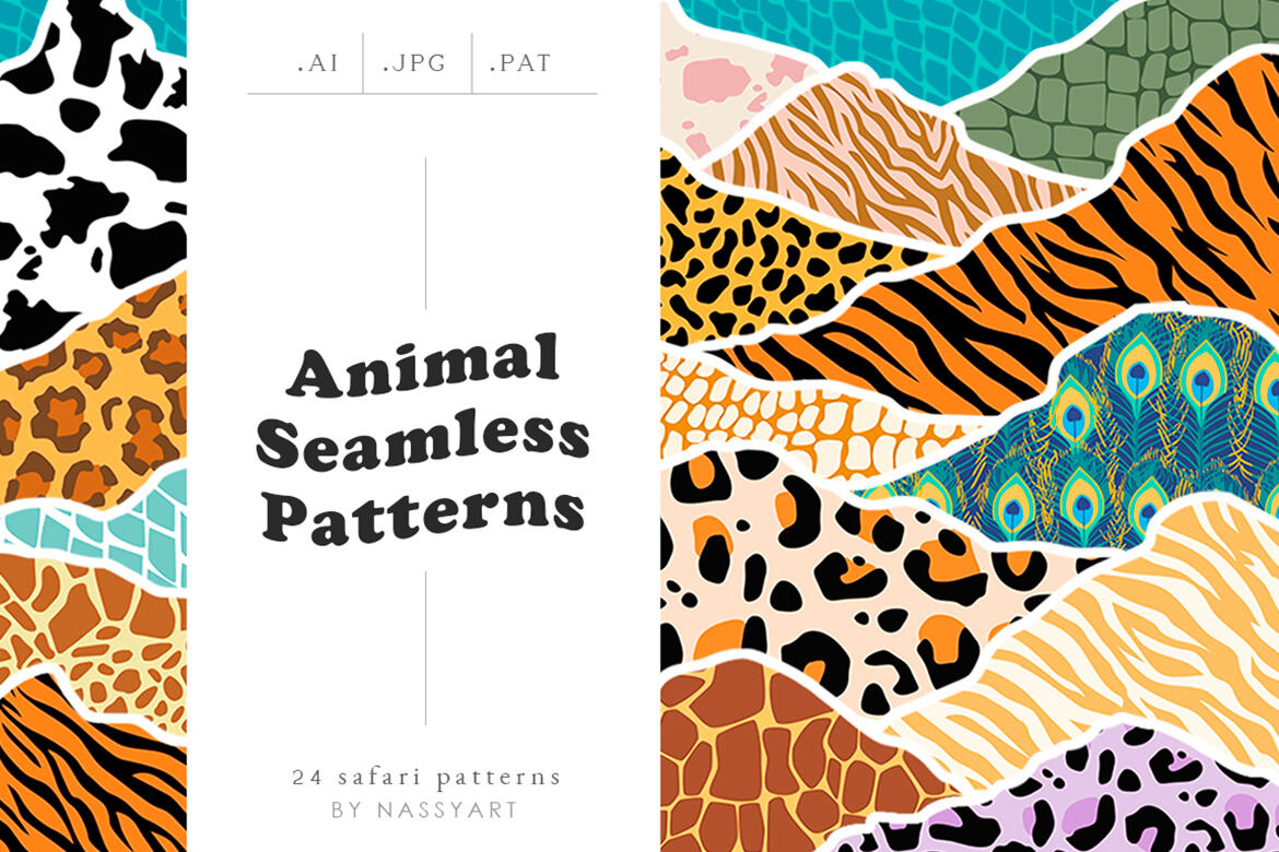 Animal Skin Seamless Patterns – fashion on the trend for animal prints is becoming popular again! This collection consists of 24 unique seamless photoshop, vector and raster animal skin patterns for every taste. You could use for fabric printing, packaging design, decor of your illustrations, chancellery, notebook and even nail design!