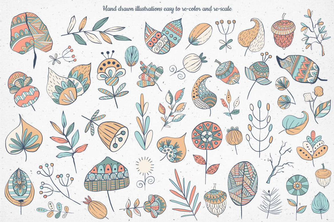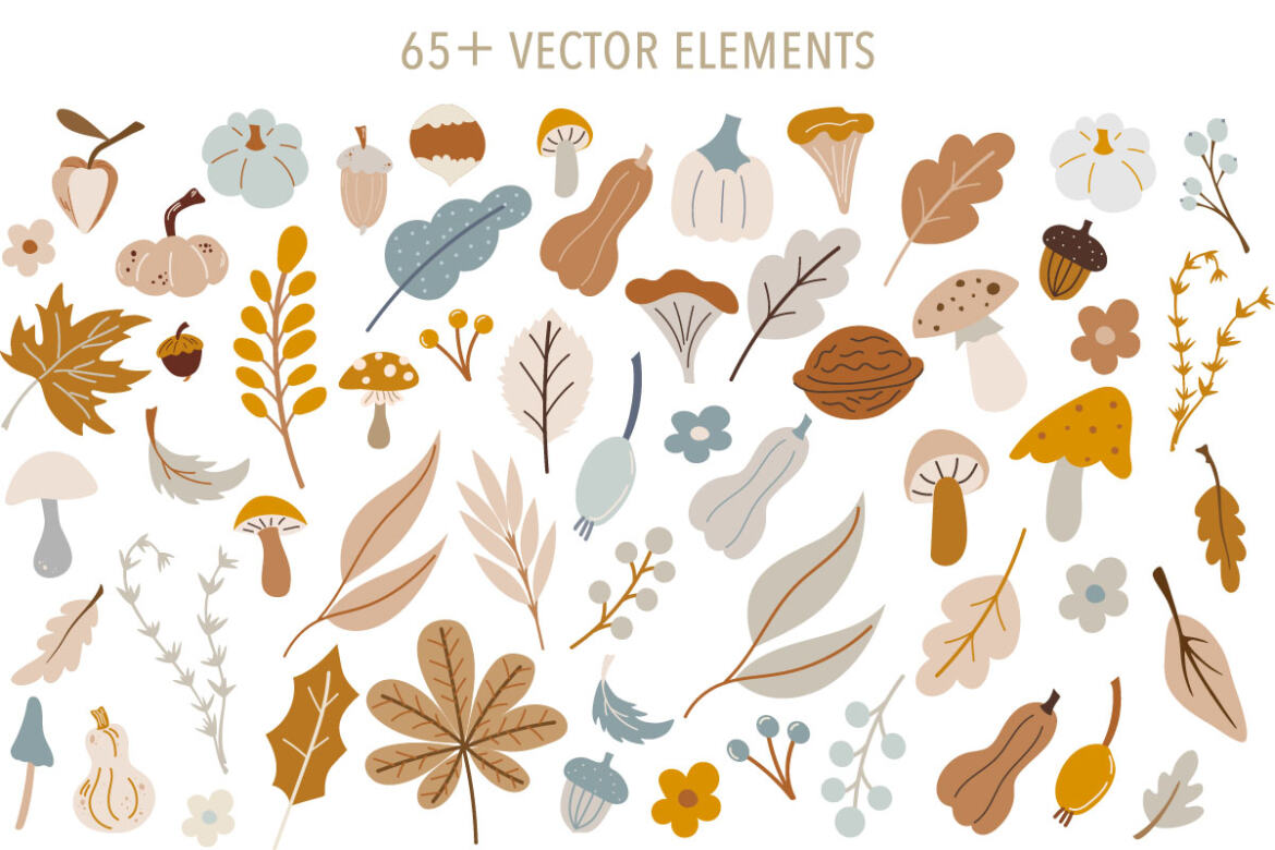 A big collection of hand drawn Autumn and Winter illustrations – berries, branches, flowers and leaves. Perfect for any creative project – party decorations, invitation cards, cupcake toppers, favor tags, label stickers, scrapbooking, stationary, printable wall art, branding projects, packaging, posters, calendars and many more!