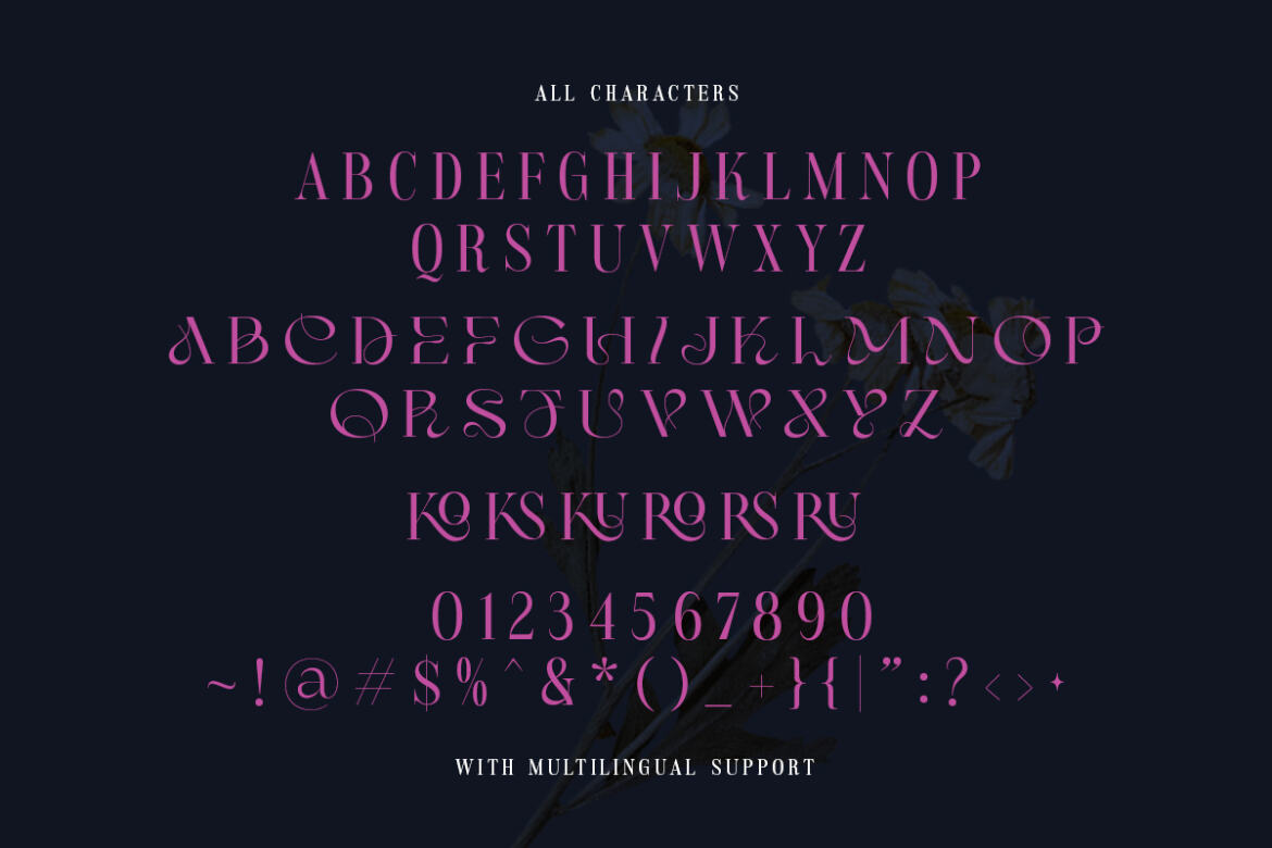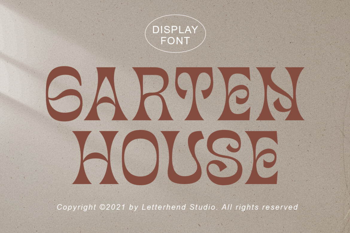 Garten House is a sophisticated high contrast display serif typeface. The ligature character makes this typeface unique and stands out rather than the regular serif font. Very suitable for logo, headline, tittle, and the other various formal forms such as invitations, labels, logos, magazines, books, greeting / wedding cards, packaging, fashion, make up, stationery, novels, labels or any type of advertising purpose.