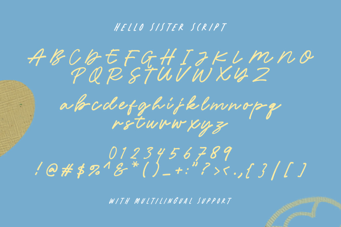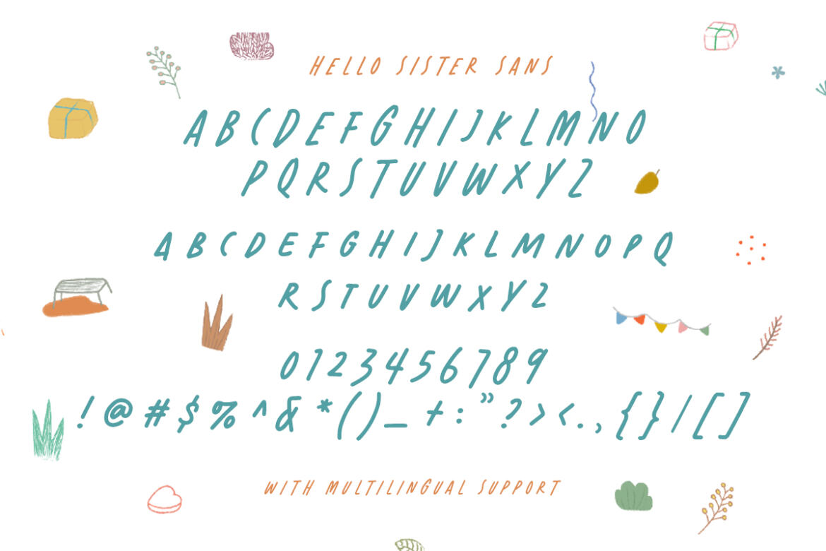 Hello Sister is a pair of font that brings the fun, playful look with feminine feel. The handwritten sans serif combined with the natural hand writing script are the perfect match for you who needs a typeface for headline, logotype, apparel, invitation, branding, packaging, advertising etc.