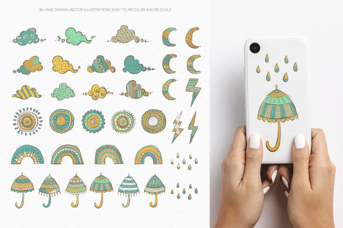 – 156 Hand Drawn Vector Illustrations in high quality 300DPI