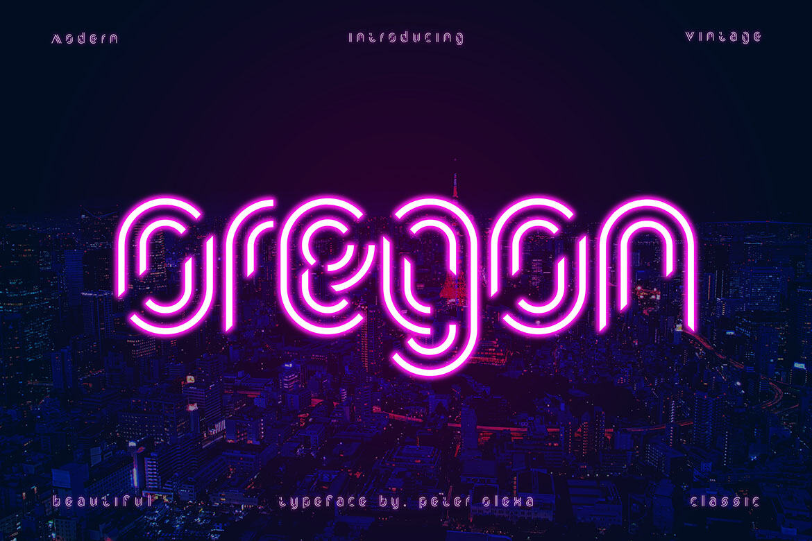 ntroducing our brand new monoline font Montagna, a very tidy monoline with short stems. Inspired by a retro poster from the 80s, old-school neon-sign, and modern-vintage design.