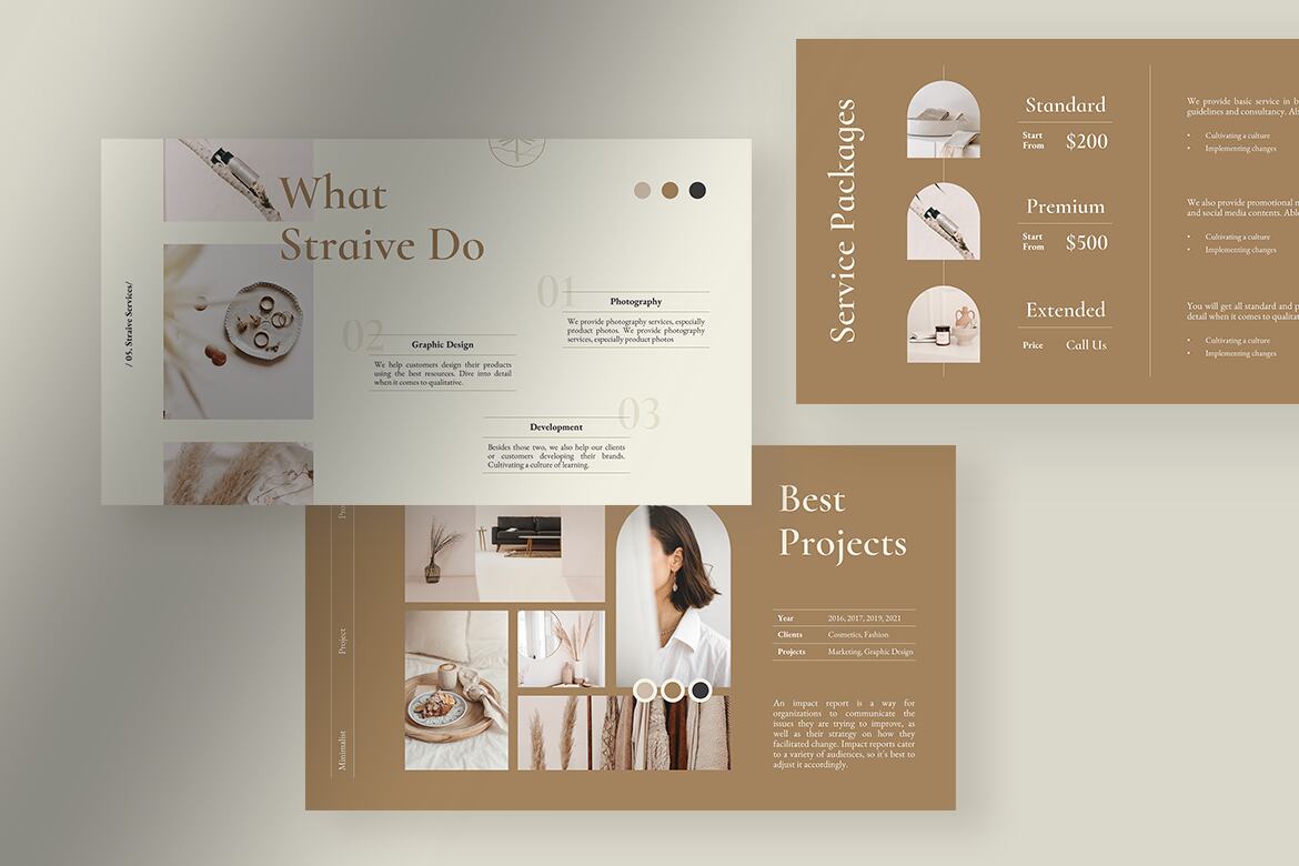 Vaire, Natural Elegant Company Profile Presentation Template, provides you with 10 unique template designs, available in PPT and PPTX format files. You can edit the text, image, and color on the template using Microsoft PowerPoint or any other compatible application on your device to be more like your preferences or needs.