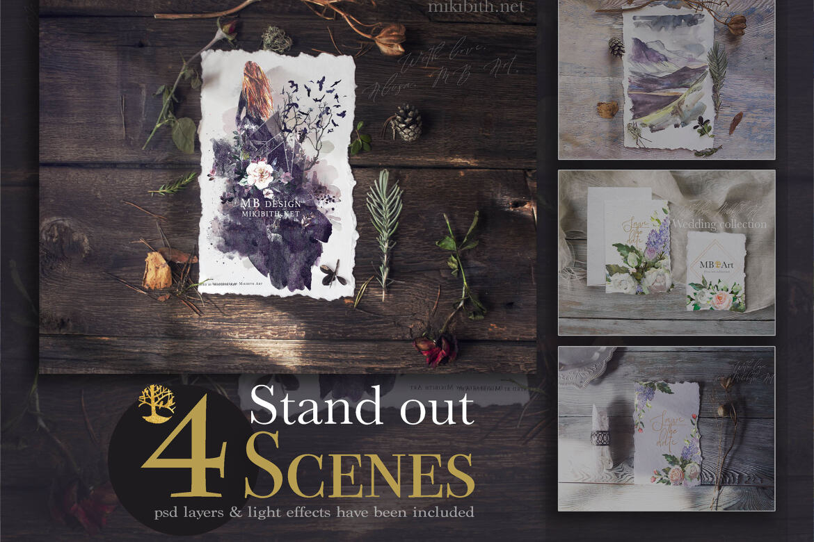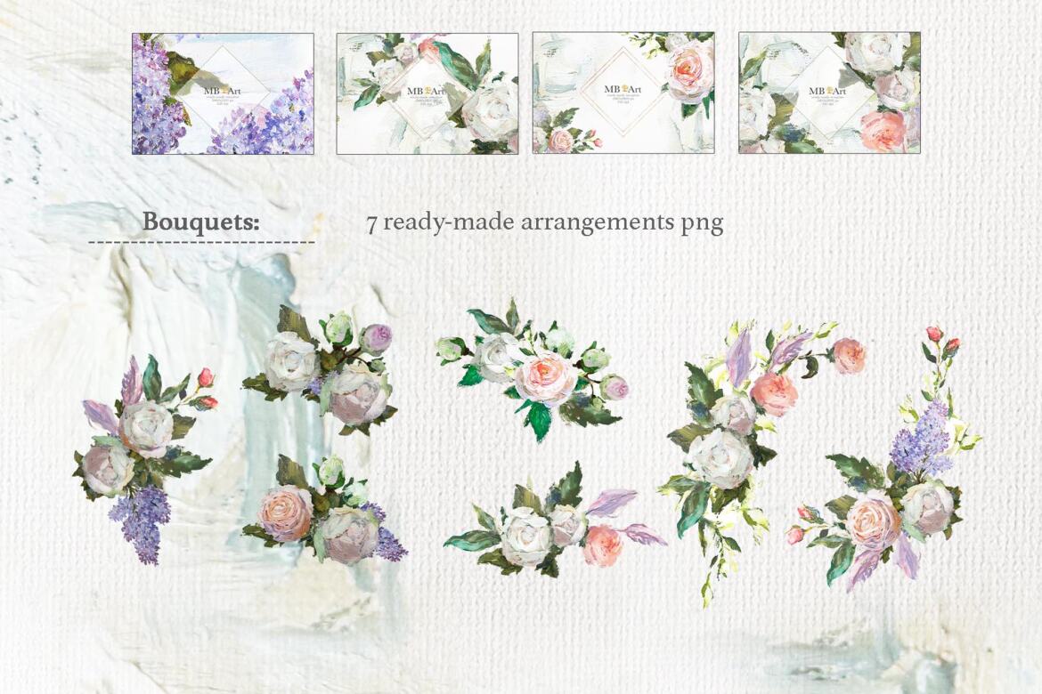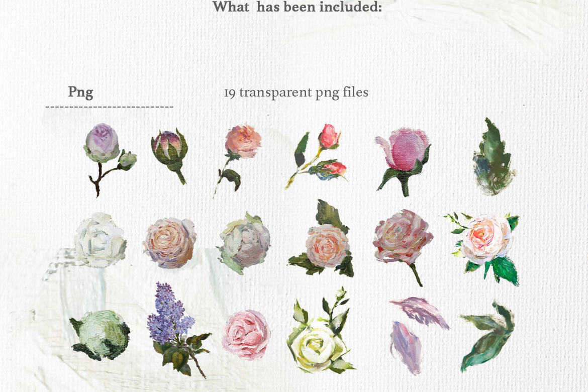 – 13 PNG compositions (PNG transparent background 300 dpi, size about 12 “x 9 inches”);