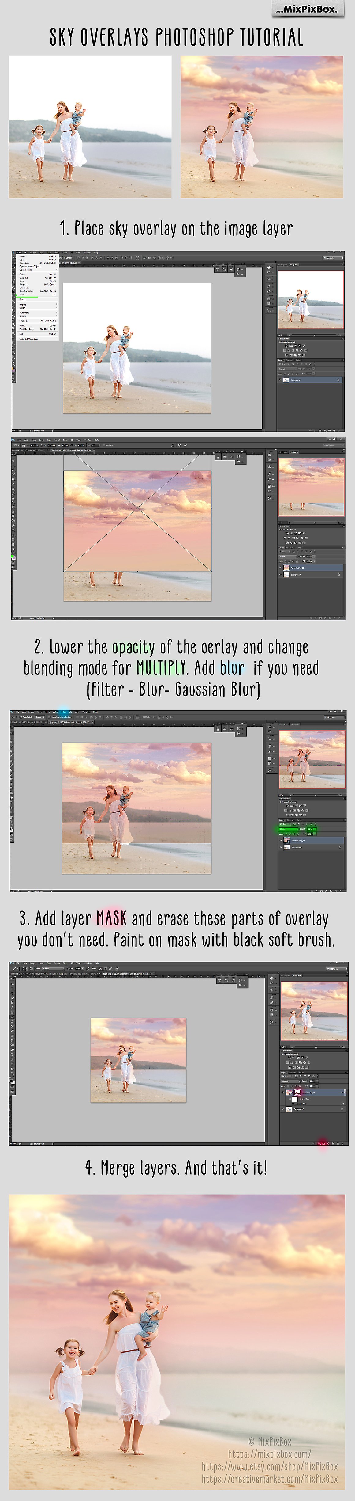 In the field of photo editing, you can apply dreamy overlays to gain more atmospheric elements or provide the flawless blue sky with serene clouds. You will learn how to get the most realistic results possible by means of our free video instruction and prompt technical support.