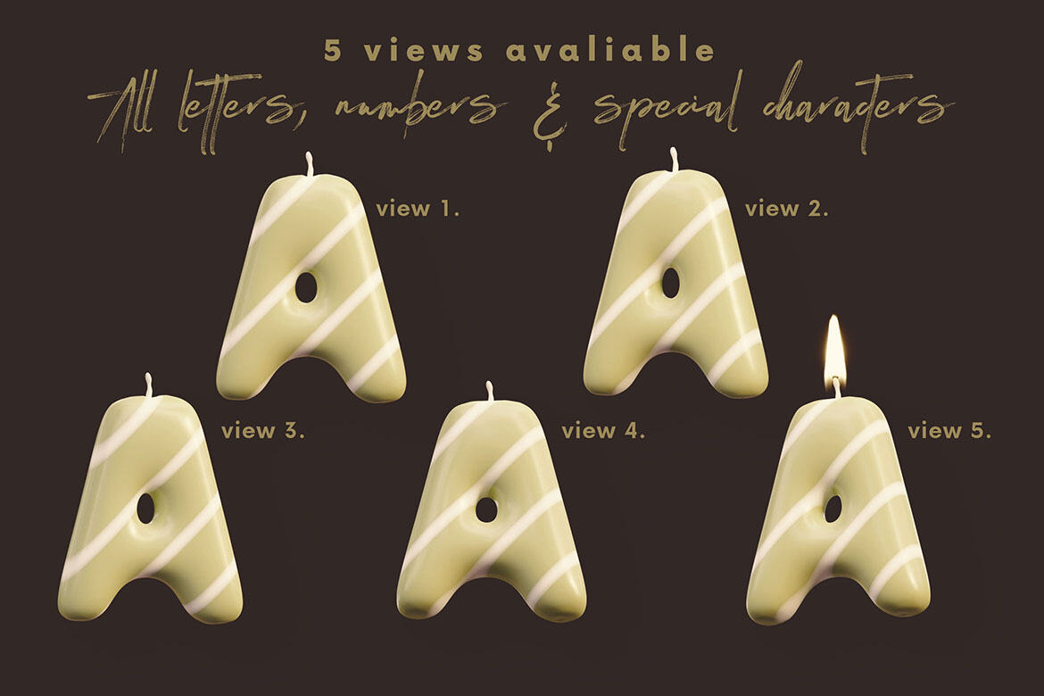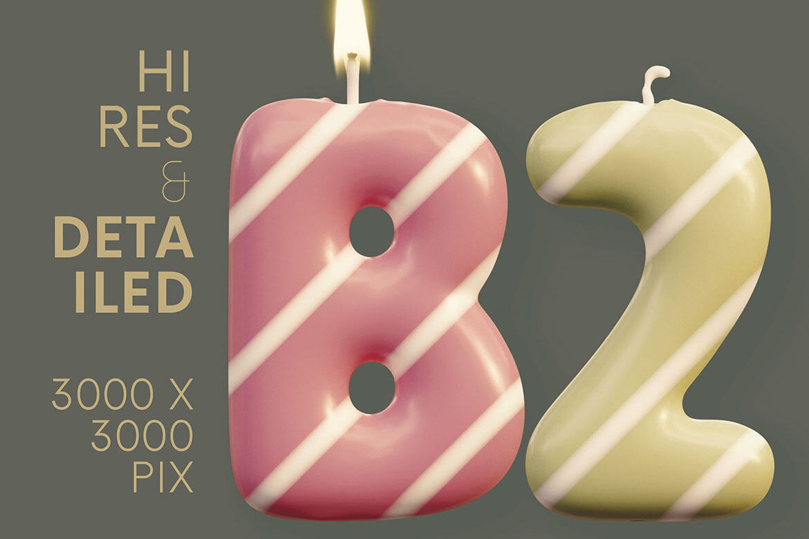 Hi-res & realistic 3D creative, funny, playful, cute, colorful & birthday candle renders (3000×3000 pix – but letter size is little bit smaller). Great for your headers, posters, advertisments – any web or print projects.