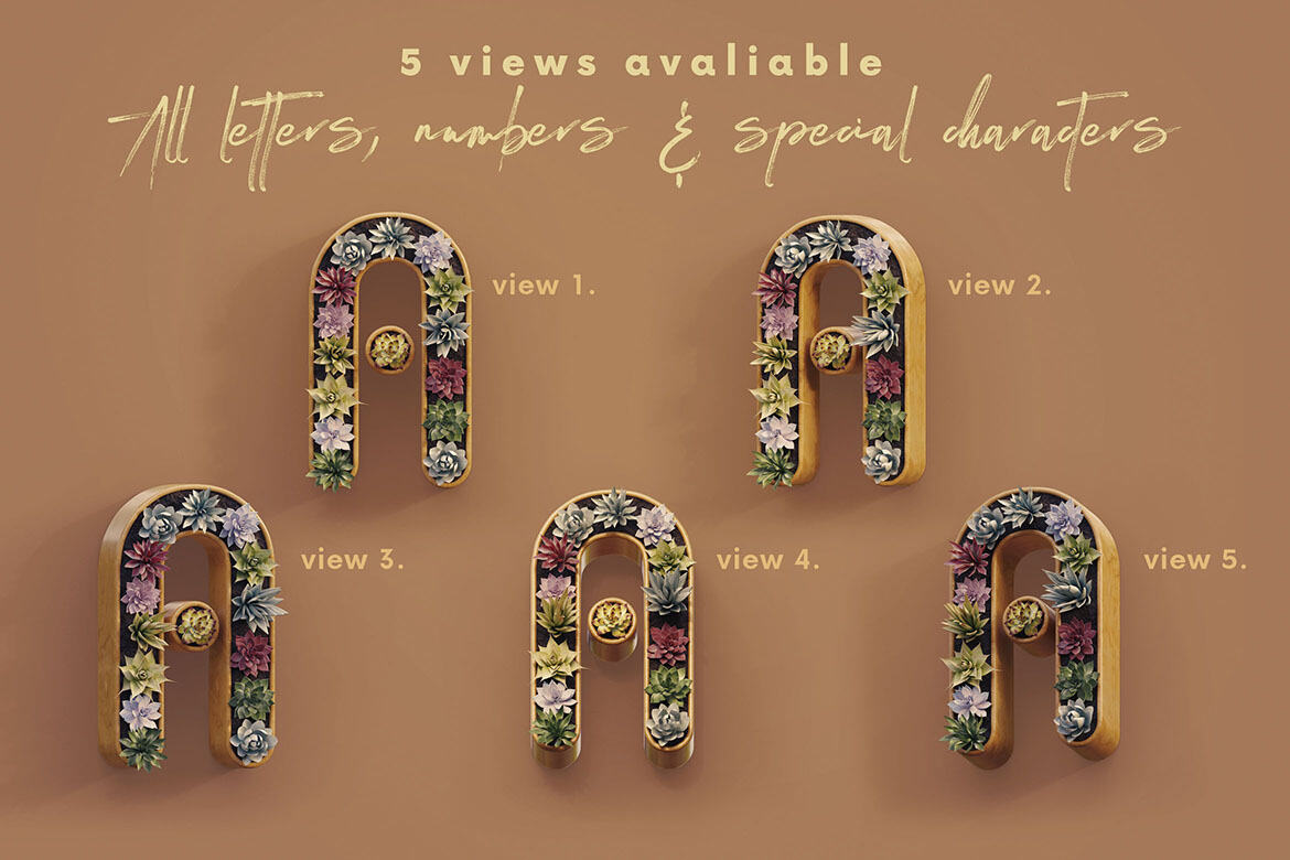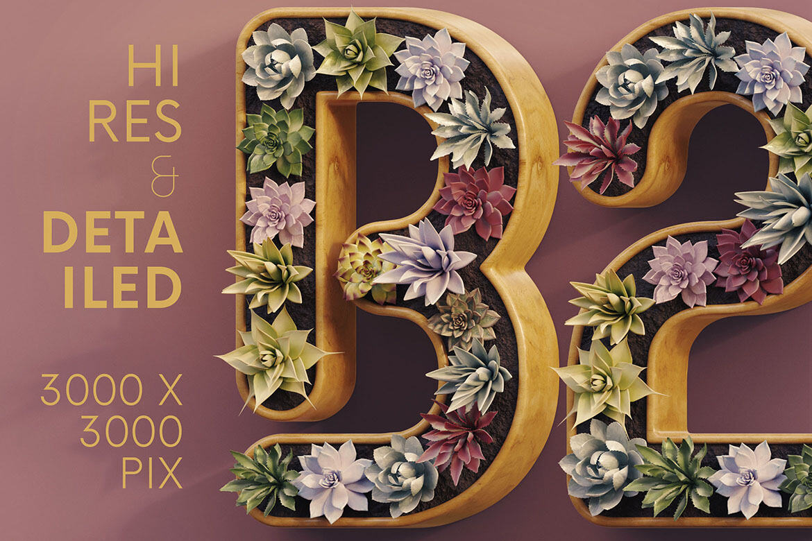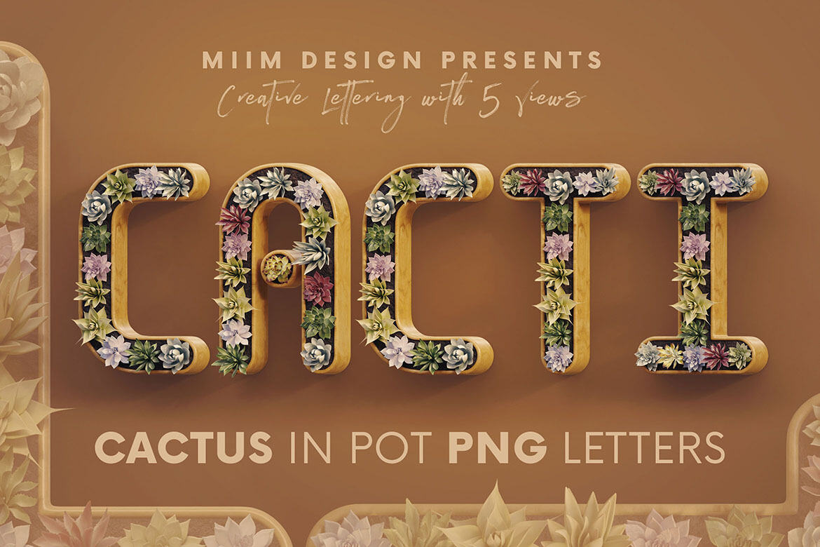 Hi-res & realistic 3D cactus in pot lettering renders (3000×3000 pix – but letter size is little bit smaller). Great for your headers, posters, advertisments – any web or print projects.