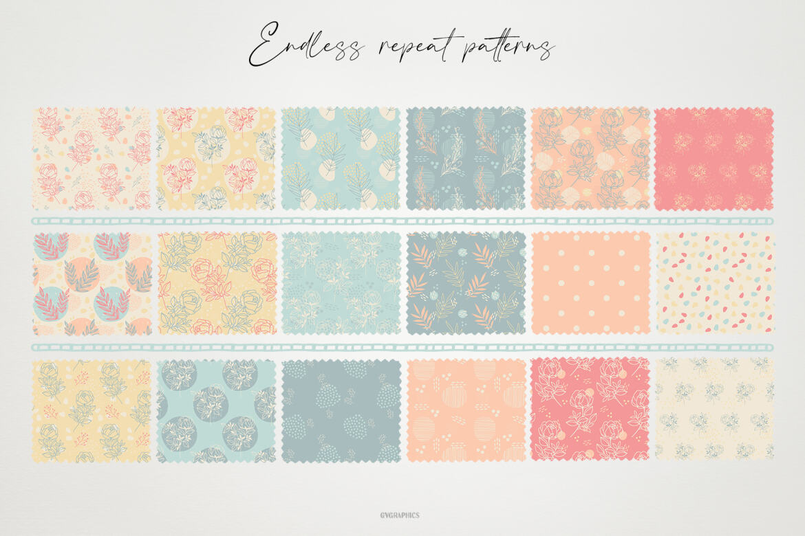 18 Different Seamless Patterns JPG 3000x3000px Pantone Colours Files