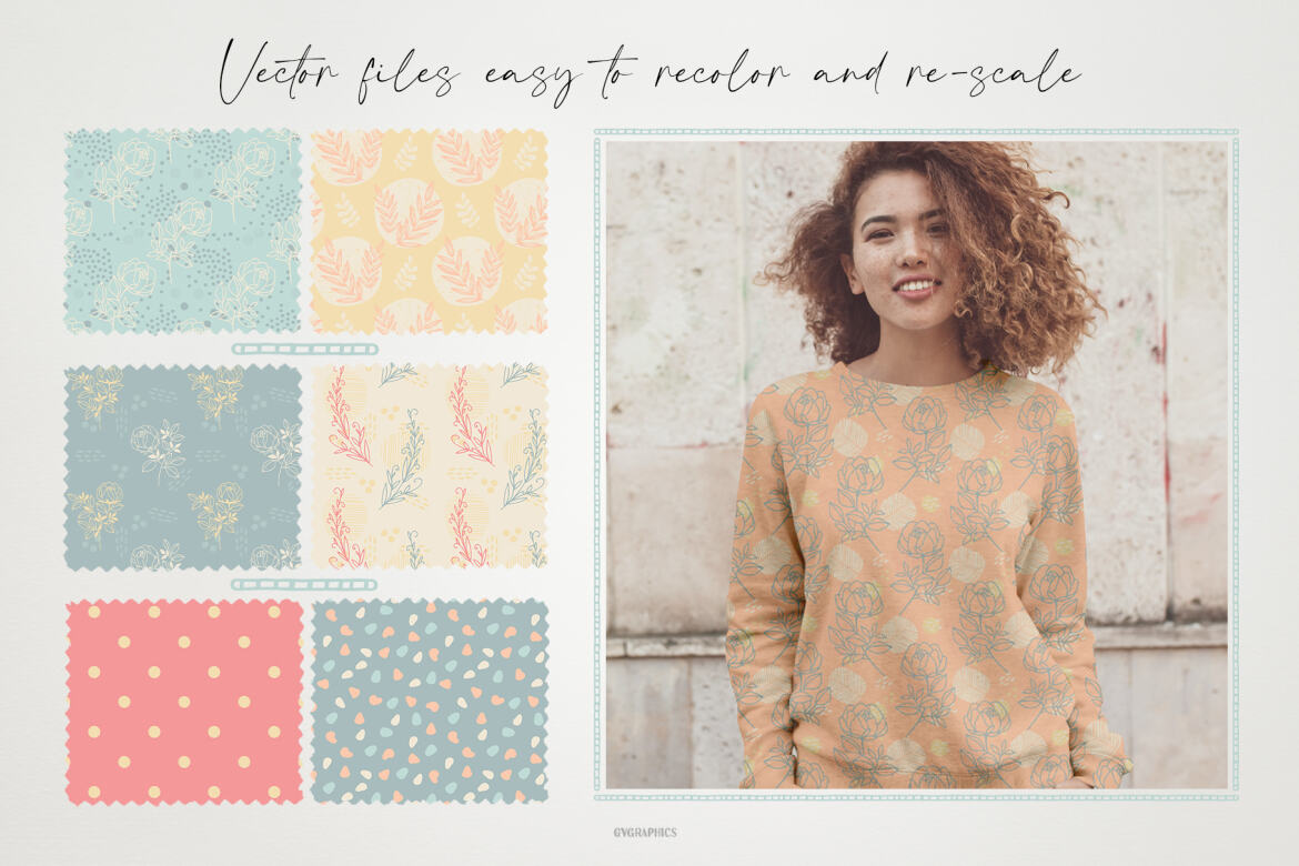 – Vector EPS with all 12 Seamless Patterns – use in Adobe Illustrator 10 and up, or any other Vector editing software