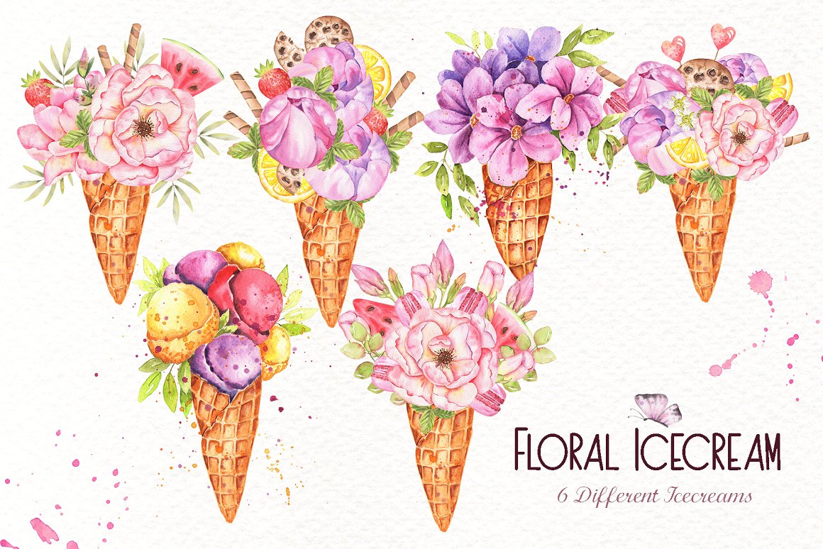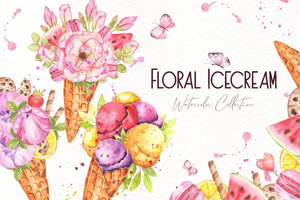 16. Floral Icecream Watercolor Set from Tanya Eksi