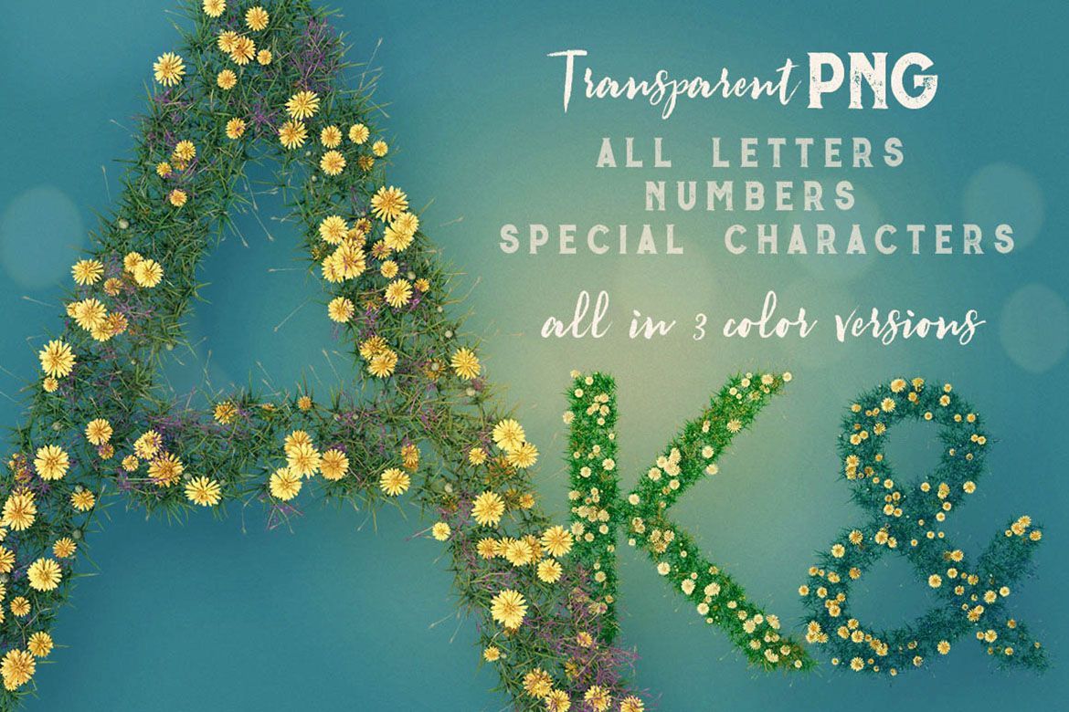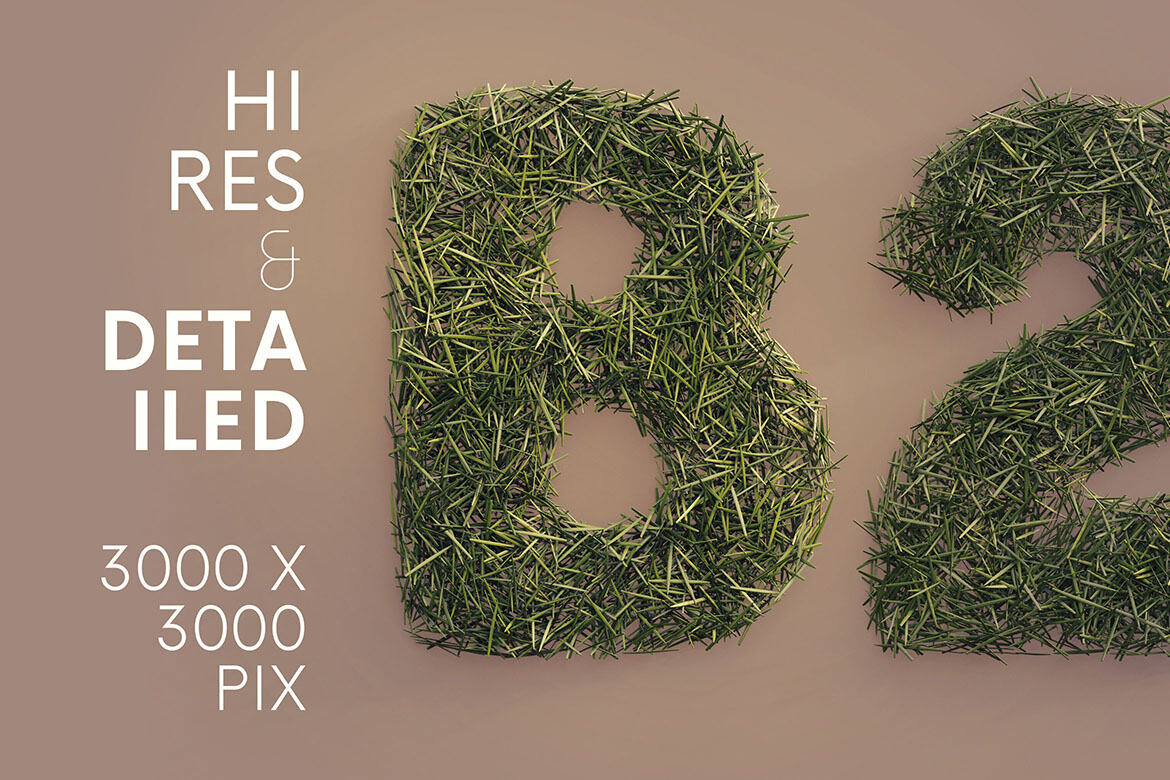 Hi-res & realistic 3D grass or nature lettering renders (3000×3000 pix – but letter size is little bit smaller). Great for your headers, posters, advertisments – any web or print projects.