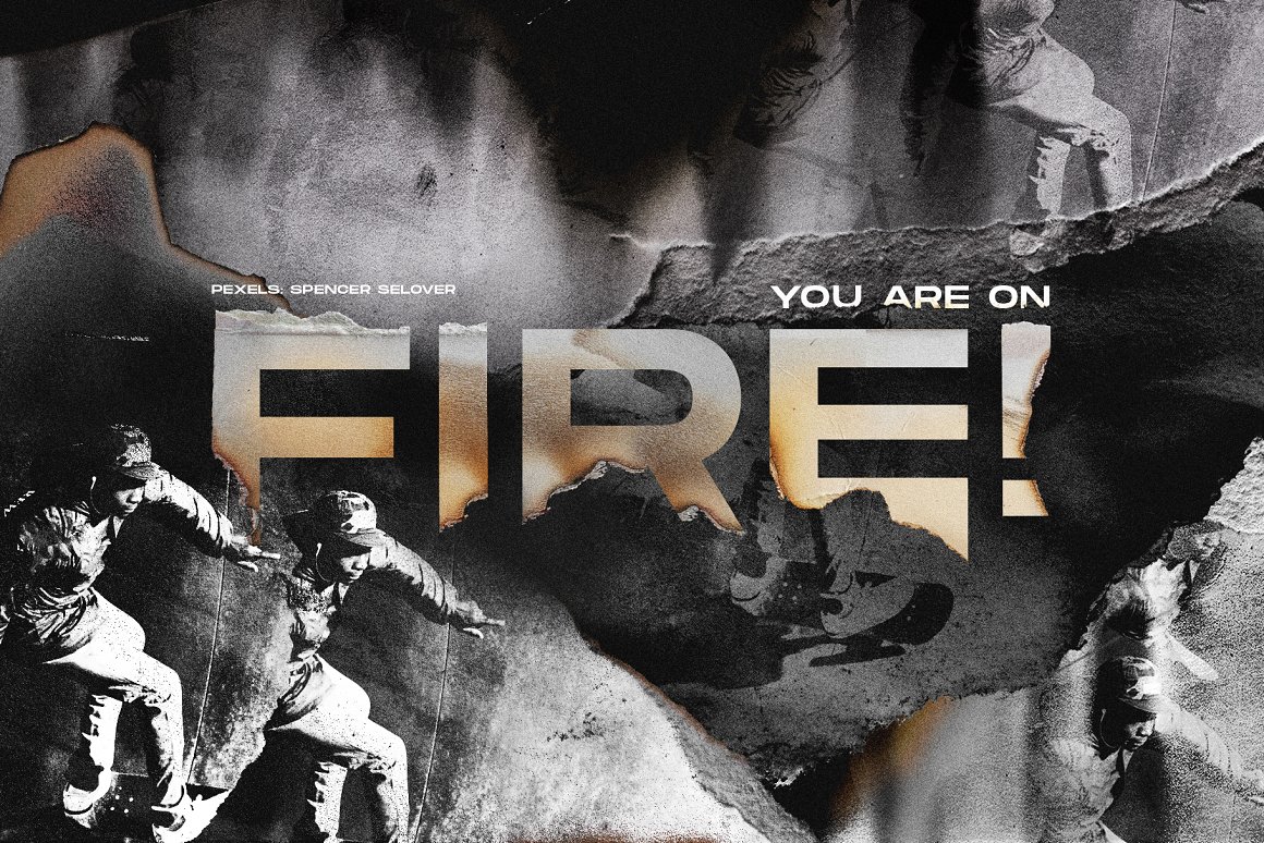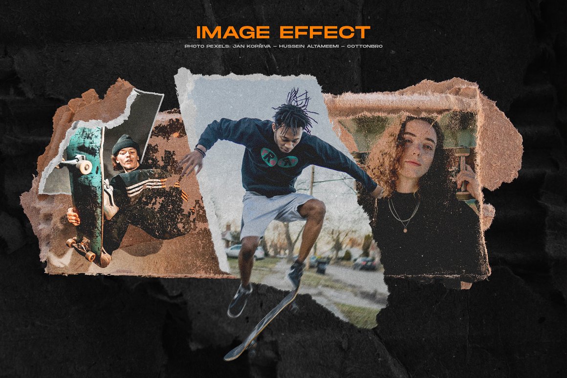 Combine them and get a grunge – dirty effect for your designs plus a torn, ripped paper edge but with a burnt finish. Working great with pictures, collage and your text or logo effects.