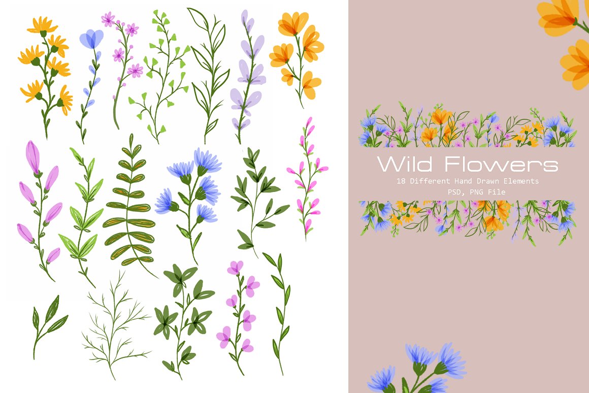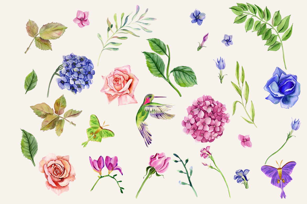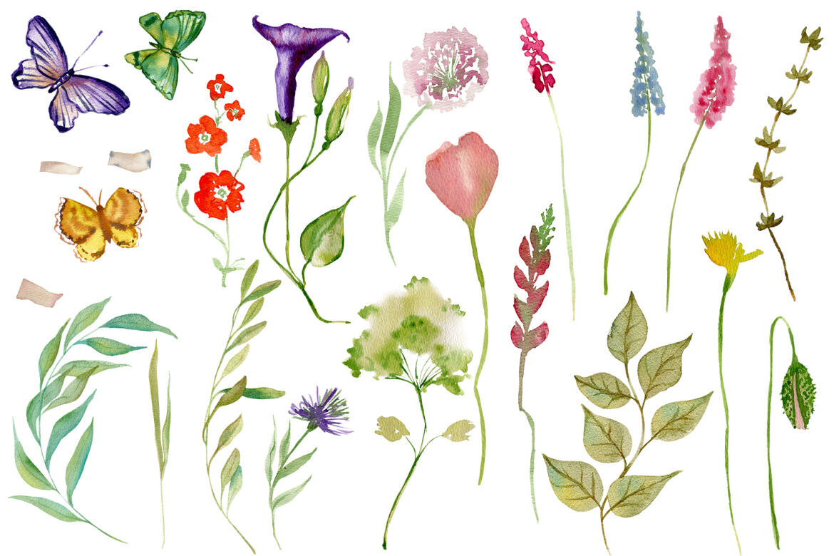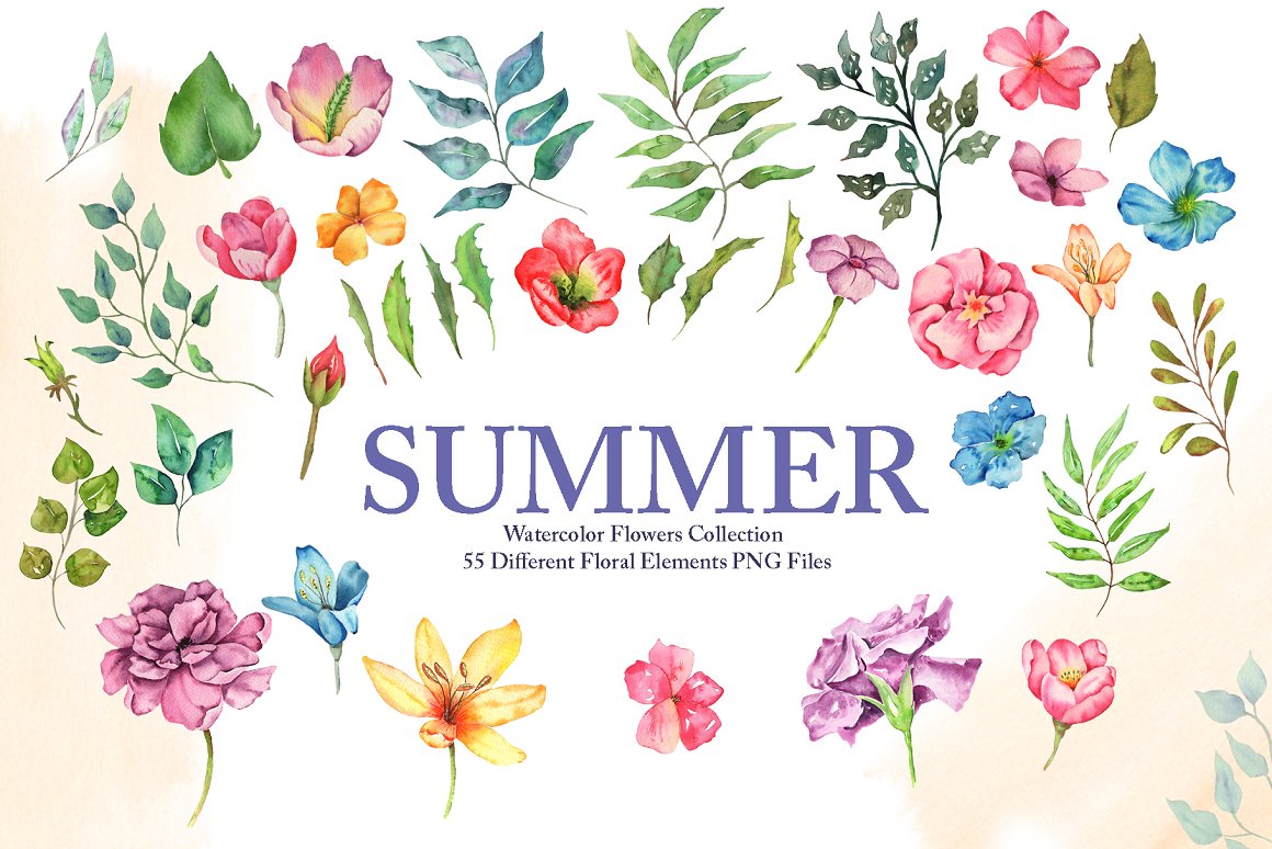 14. Watercolor Summer Flowers Collection from Tanya Eksi