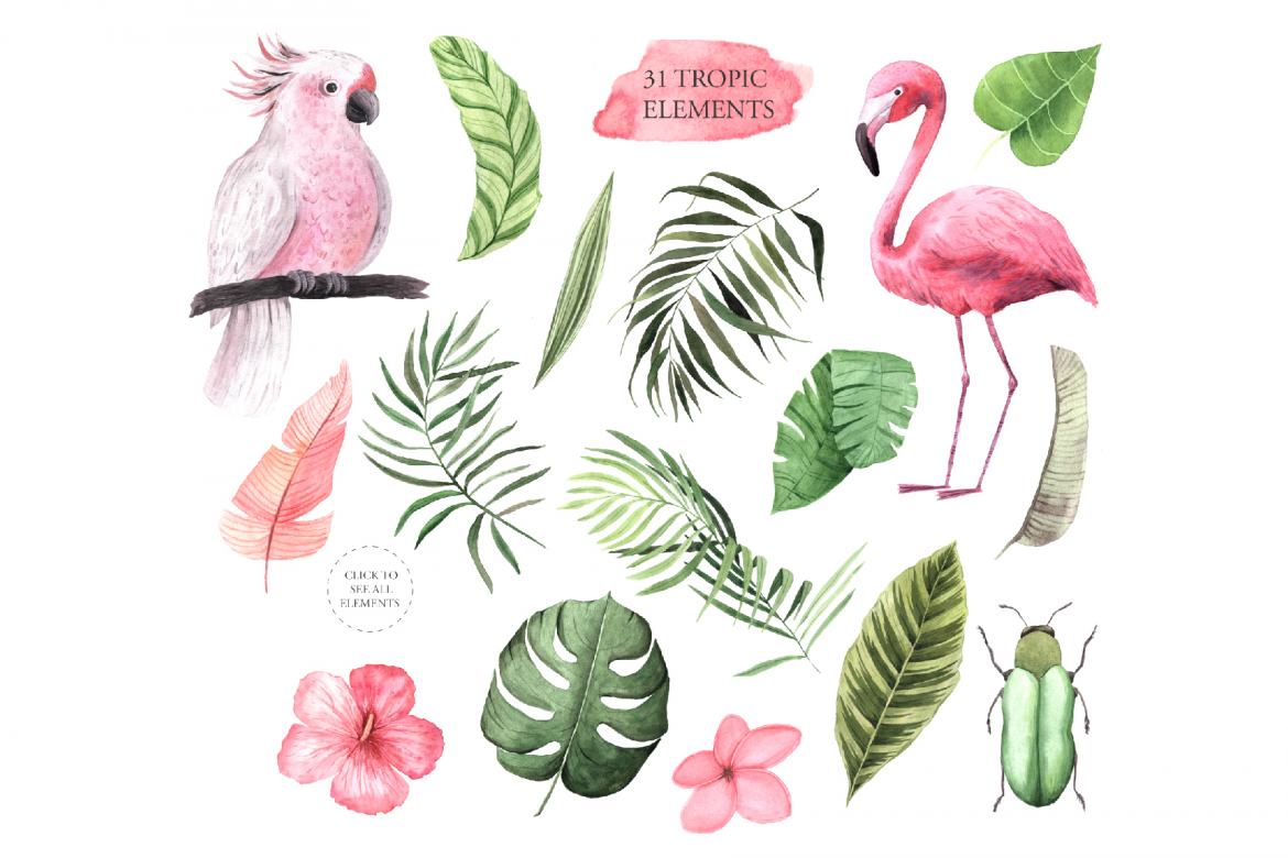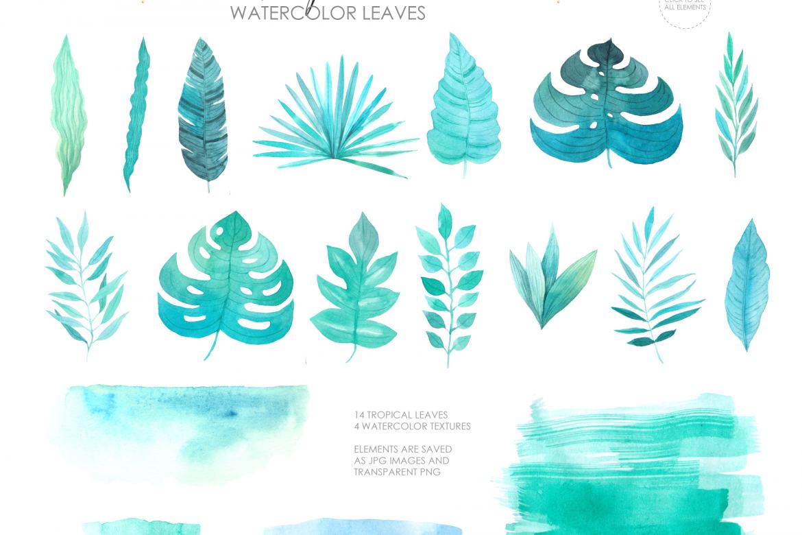 28 Seperate Elements in Watercolor PNG Files.