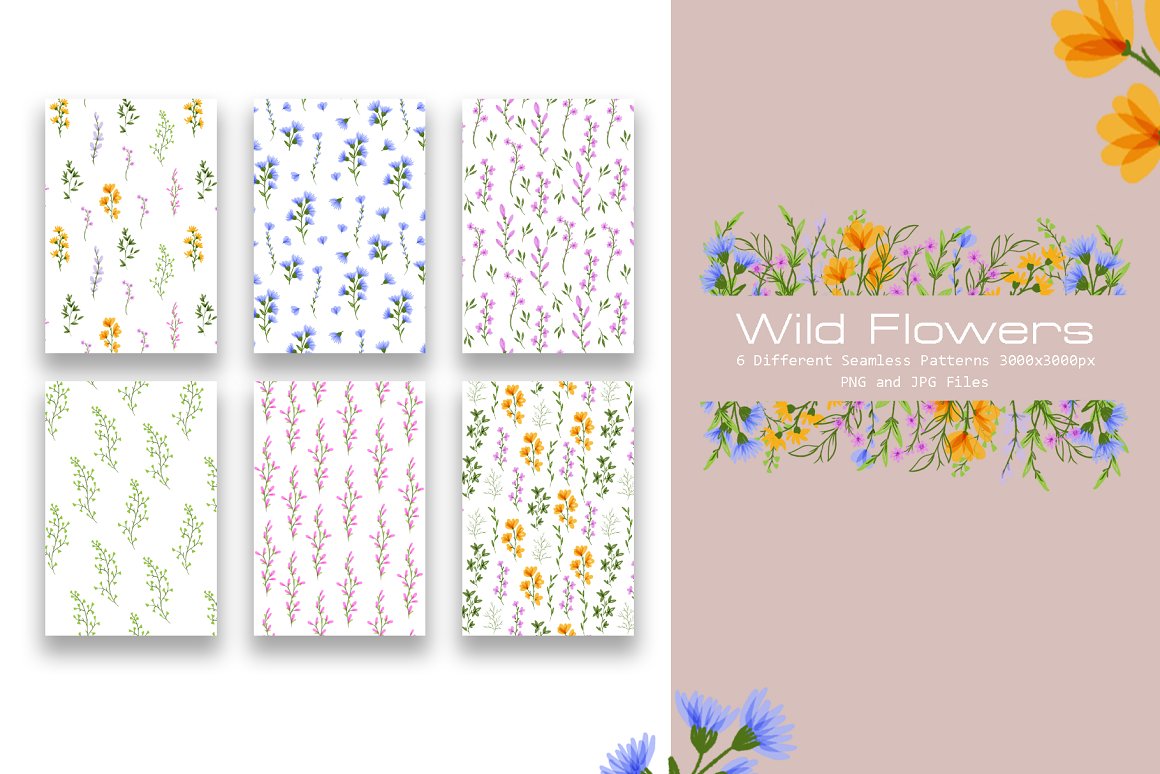 6 Different Seamless Patterns PNG 3000x3000px Files