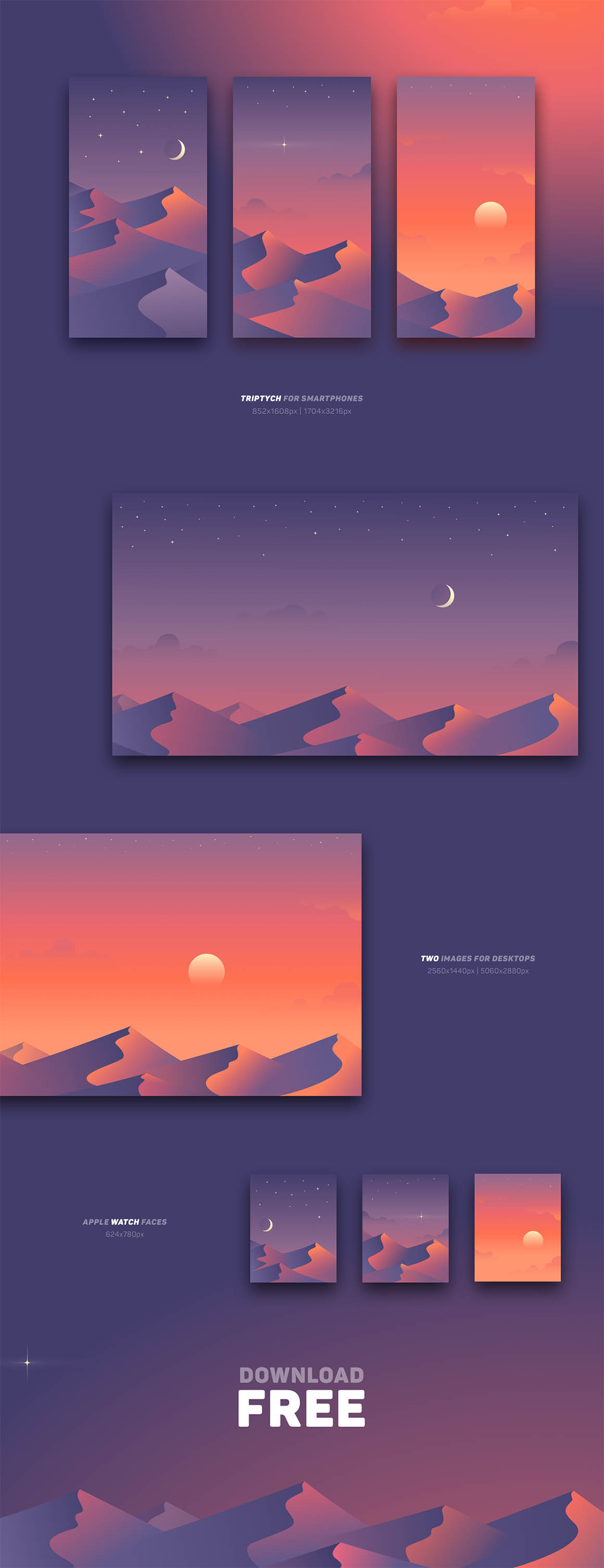 These simple and creative wallpaper design are from Maria Shanina. All wallpapers in 3 device sizes in PNG (desktop, smartphone & watch). Download and enjoy đ
