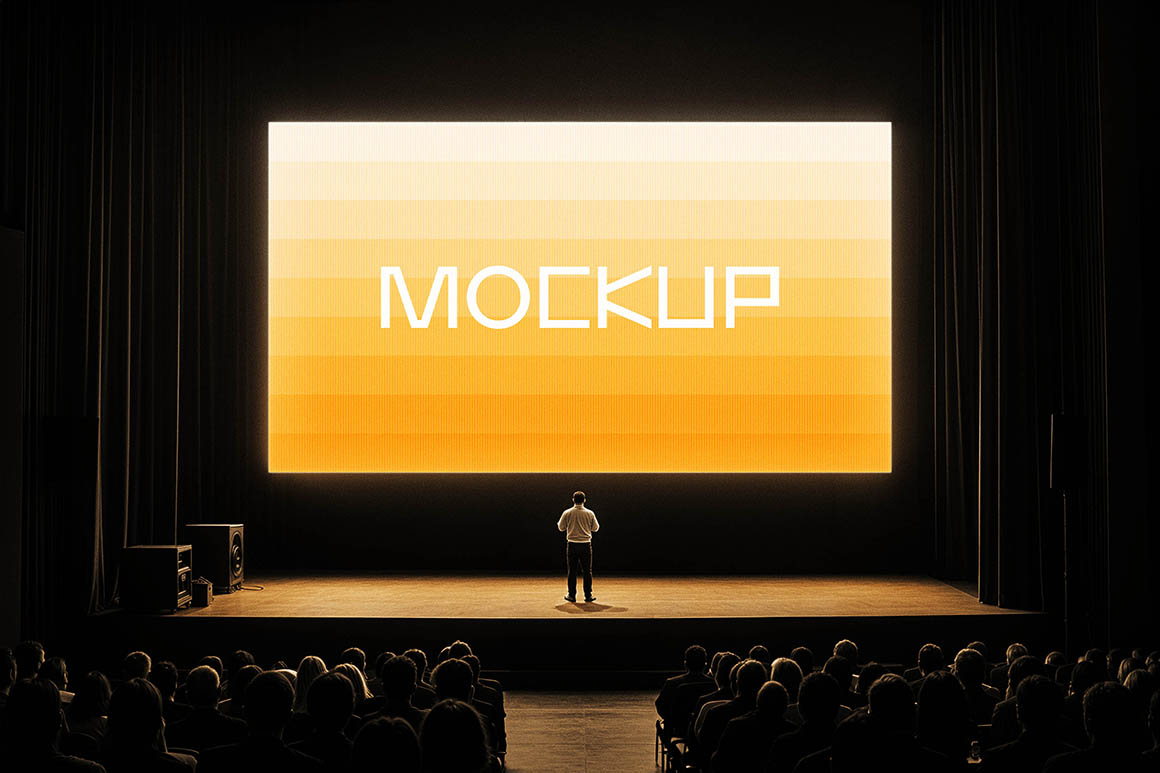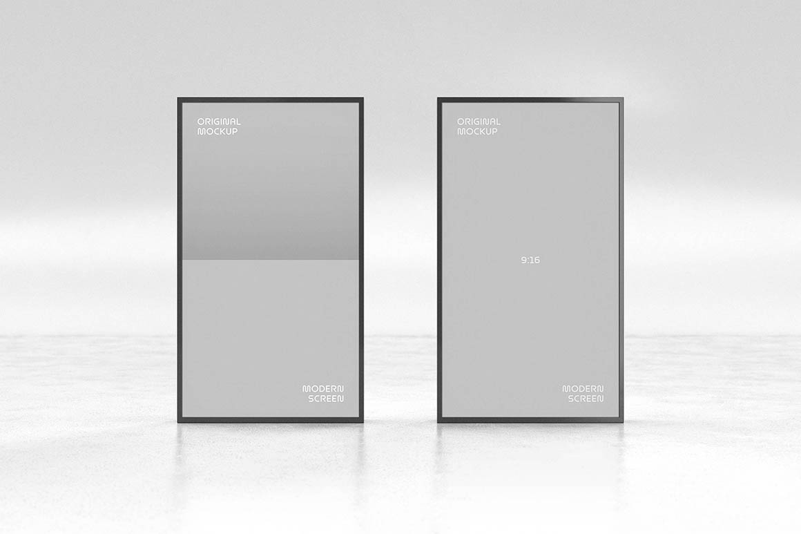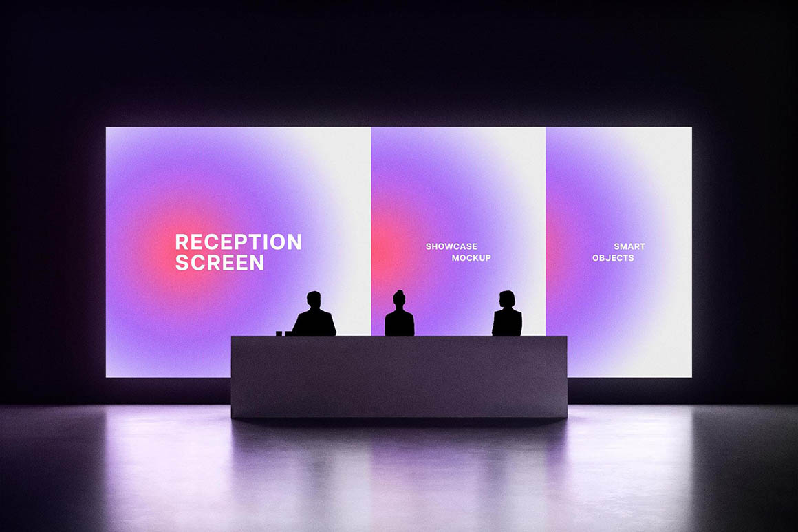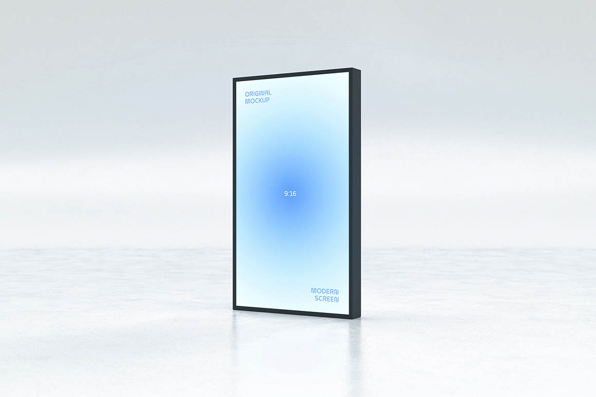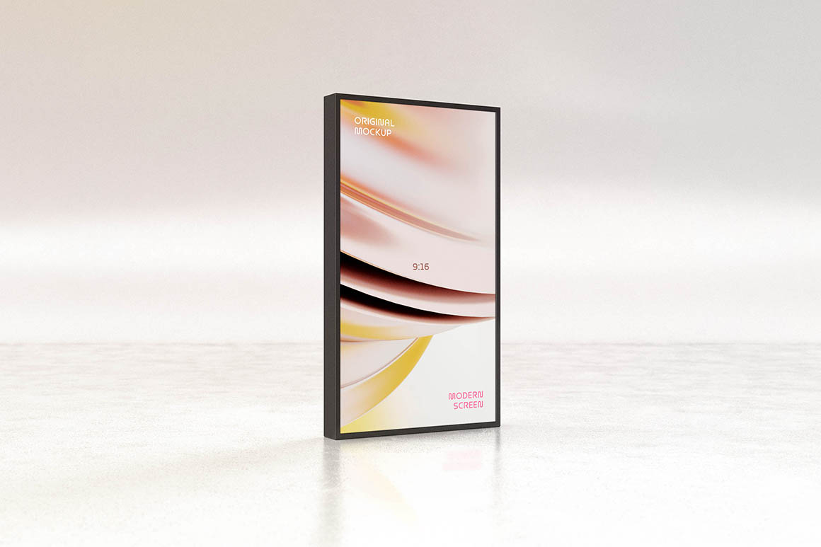 Designers working on event branding, conference signage, exhibition visuals, in-store digital display, way-finding signage, or large-format social posts will appreciate the diversity. The mockups work smoothly to showcase keynote graphics on a conference stage; film-festival or product launch visuals on ultra-wide screens; mobile-first vertical campaigns on tall digital signage; lobby branding on reception desk monitors; gallery-style art installations or portfolio presentation; and store windows or facade lightboxes for retail context.