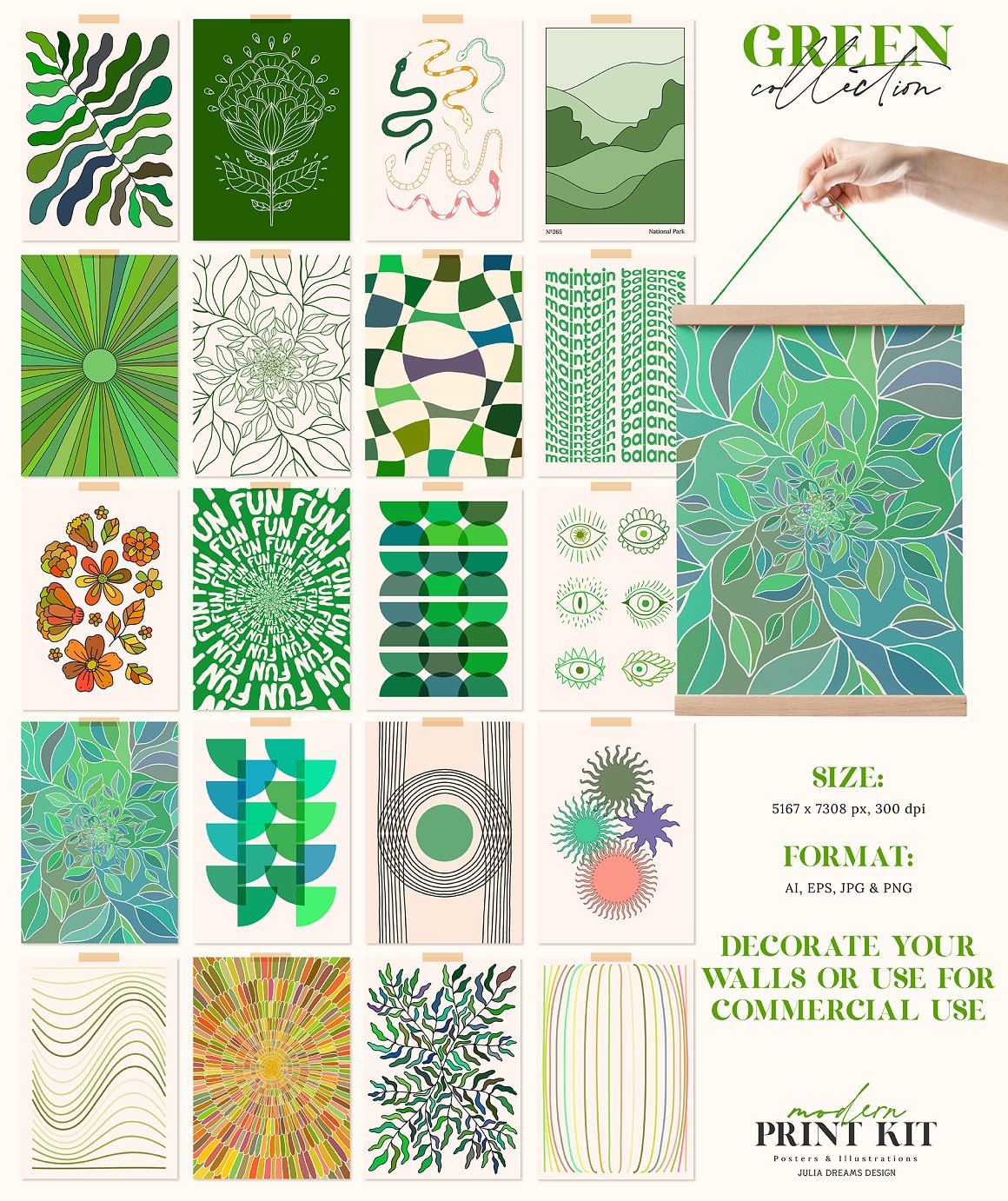 Welcome to the Modern Print Kit Posters and Graphics. A collection that is perfect for personal and commercial use. Just print the posters and decorate your room or complement your business with a series of posters and postcards. This collection was carefully crafted and great attention was paid to details. It consists of different pre-made elements and posters that can be used individually or combined with other elements. Use ready-to-use elements to create your own individual design.