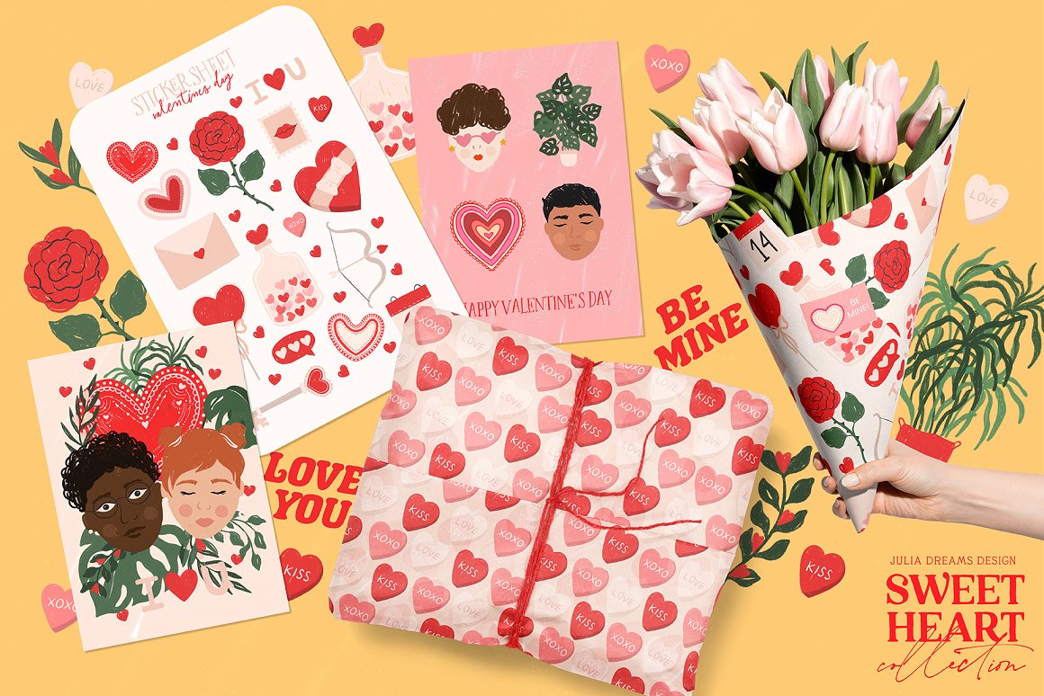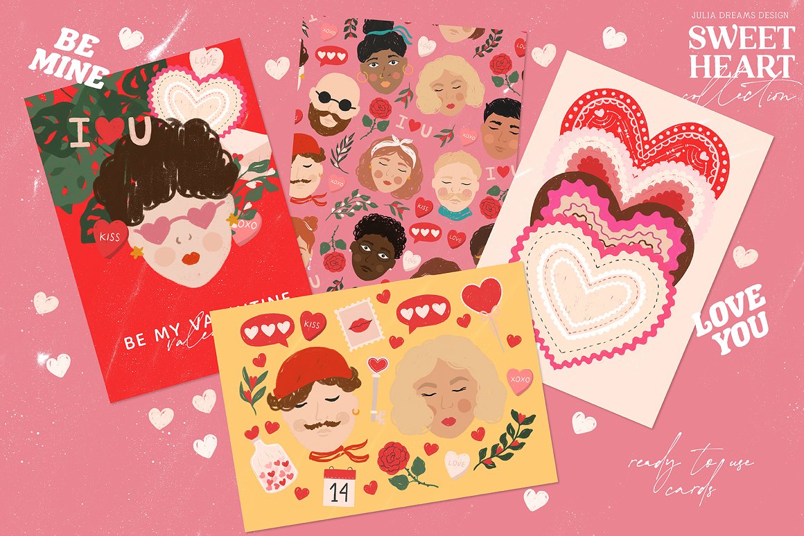 Sweetheart Collection great for logo, posters, cards, branding, covers, gifts, social media accounts, wrapping paper, wallpaper, fabric, scrapbooking, stickers, sites, blogs, invitations and much more!