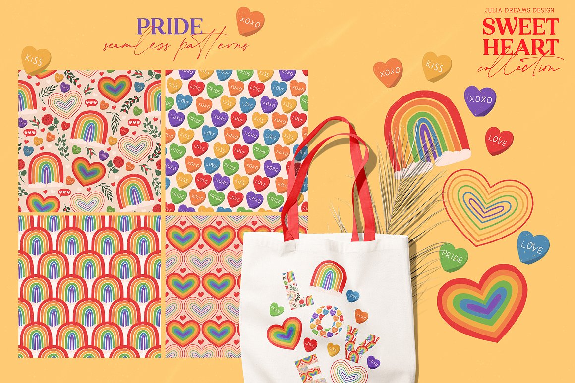 - Pride: 9 elements and 4 Seamless Patterns – png with transparent background;