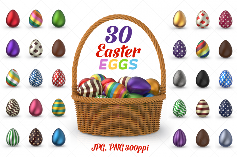 Set of 30 Eggs 3D + a basket full of Easter eggs