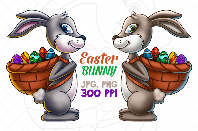 Easter Bunny Carrying A Basket Of Eggs – Digital Painted Illustration