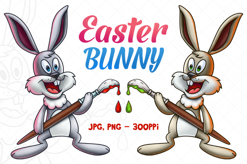 Easter Bunny Holding Paintbrush – Cartoon Bunny ready to paint some eggs 🙂