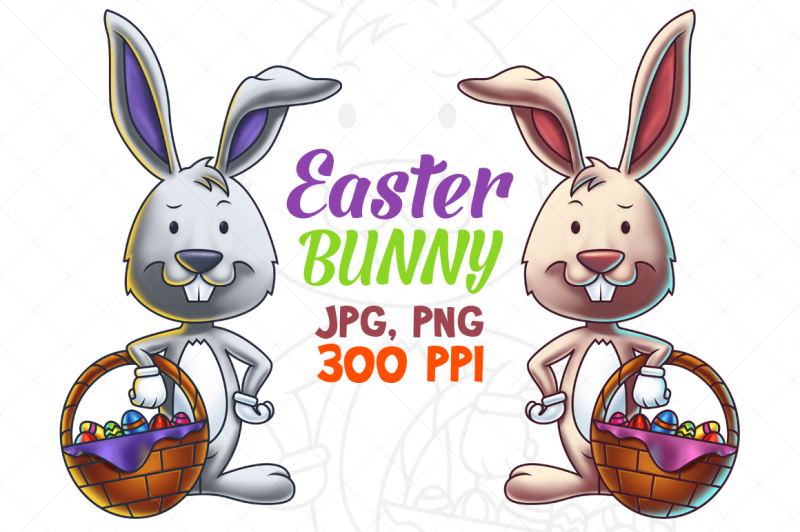 Easter Bunny With A Basket Of Eggs – Digital Painted Illustration