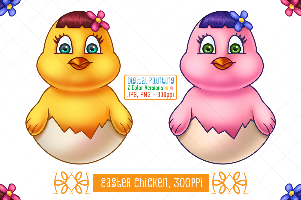 Easter Chicken in Egg Shell Cartoon Character – Digital Painting