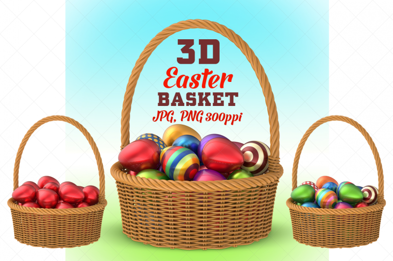 2. Wicker Basket with Easter Eggs – 3D by Pixaroma